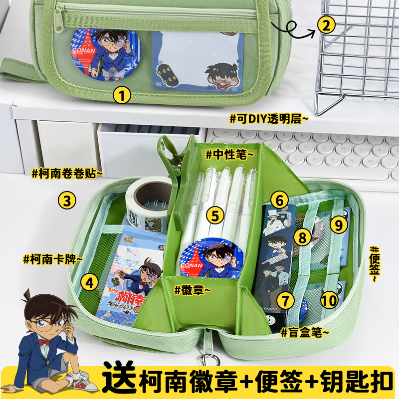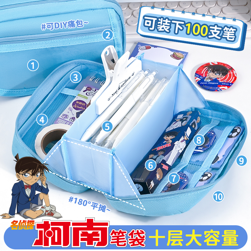 名侦探柯南笔袋男孩多层大容量文具盒网红爆款学习用品小学生一年级女孩高颜值痛包2025新款幼儿园儿童铅笔盒