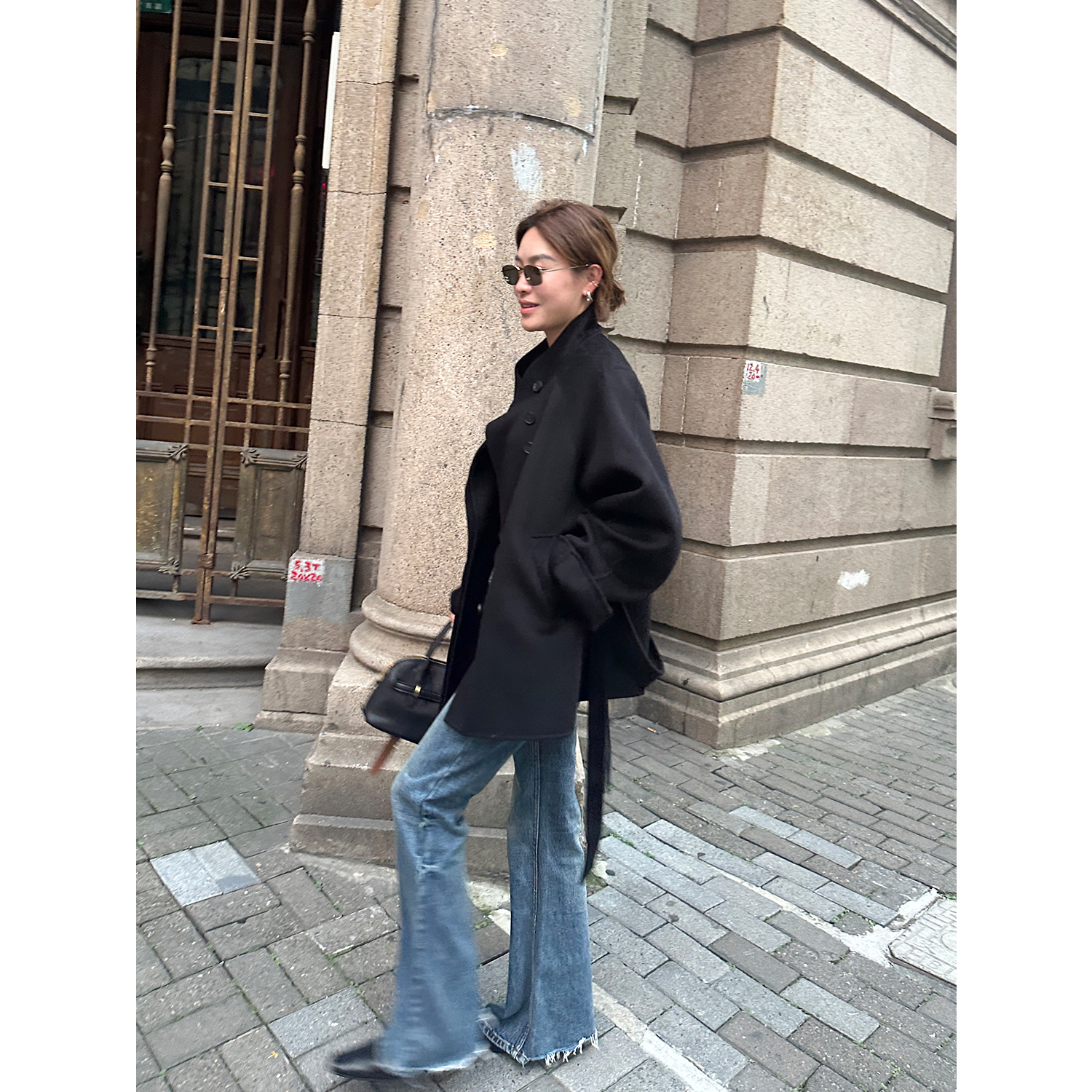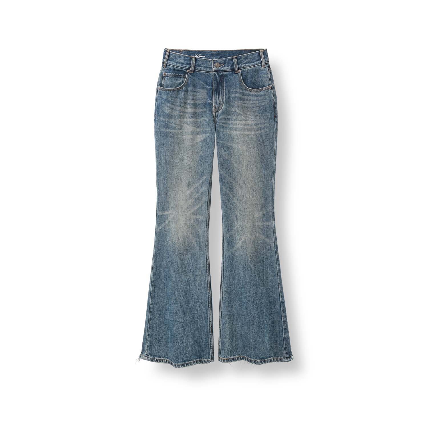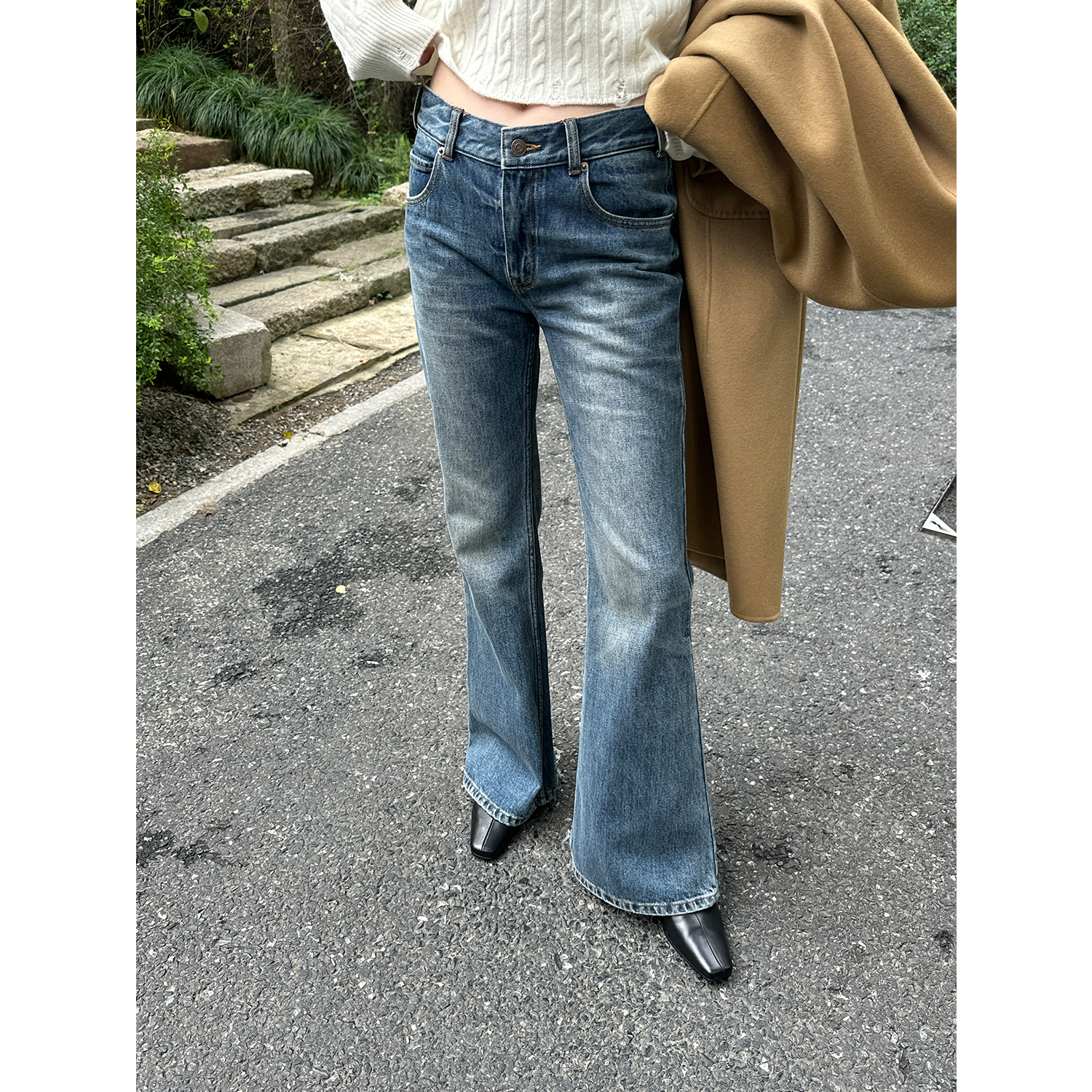 YANGLE_微喇牛仔裤女修身2025年春季新款复古高腰水洗休闲拖地裤
