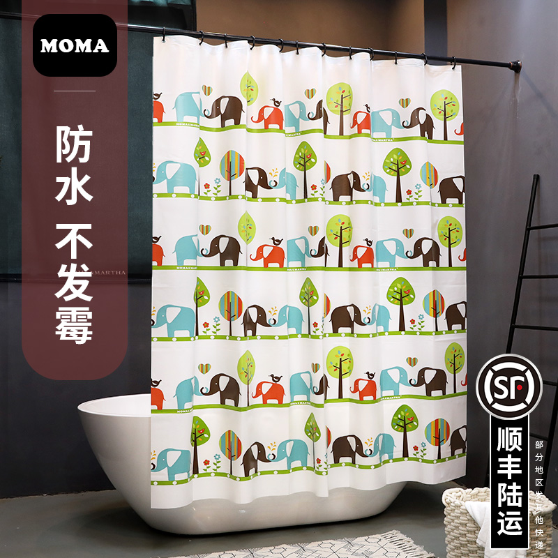默玛EVA浴帘防水加厚防霉卫生间浴帘卡通浴帘布隔断帘淋浴帘大象