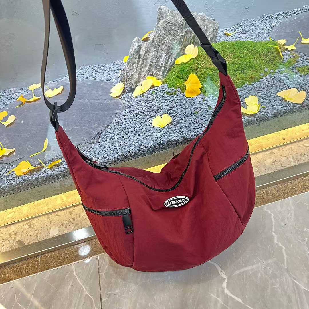 原创大容量牛津布斜挎包休闲简约百搭月亮饺子包通勤运动上课包潮