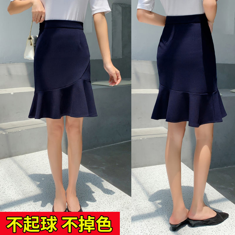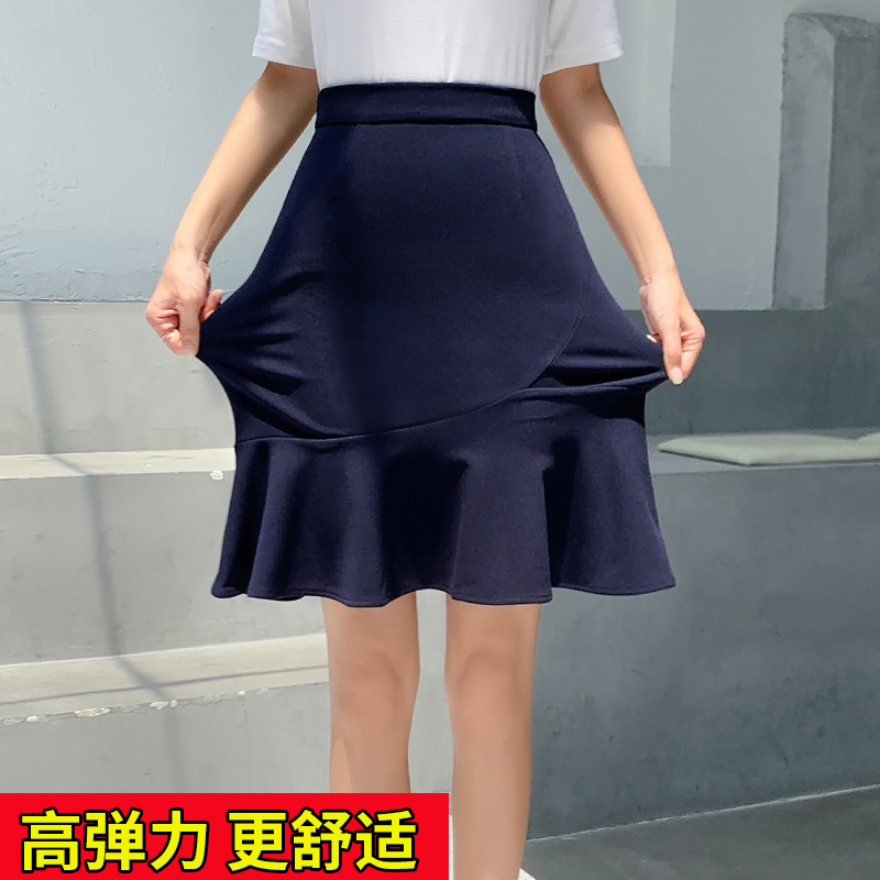弹力鱼尾裙夏半身裙大码胖mm荷叶边短裙职业工装西装裙子包臀半裙