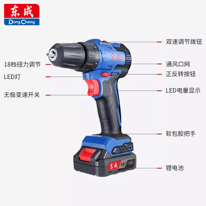 东成无刷电钻电动螺丝刀家用电转手枪钻冲击钻多功能充电锂手电钻
