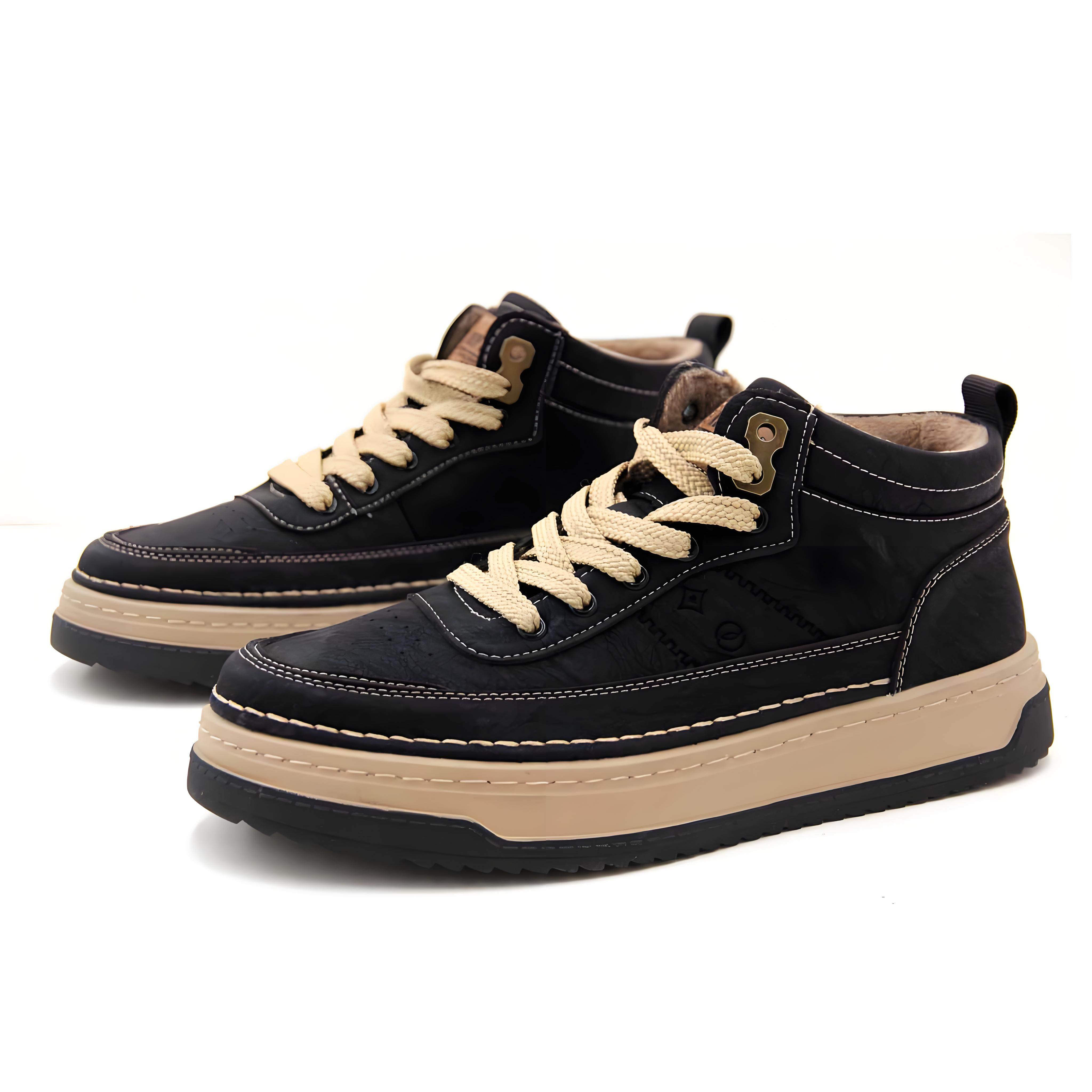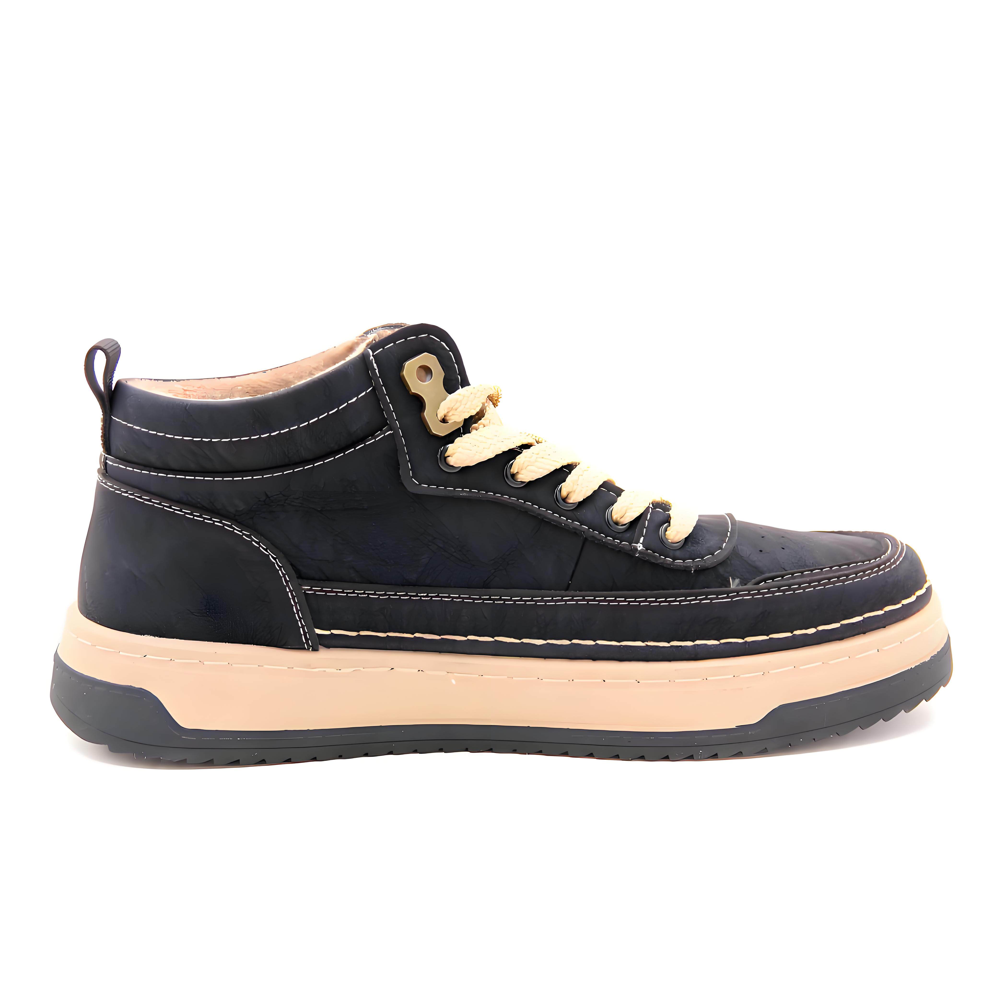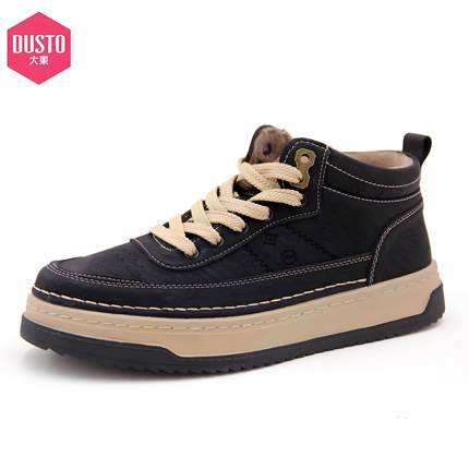 大东休闲鞋男24冬季新款时尚平底中跟圆头系带男鞋24D1139