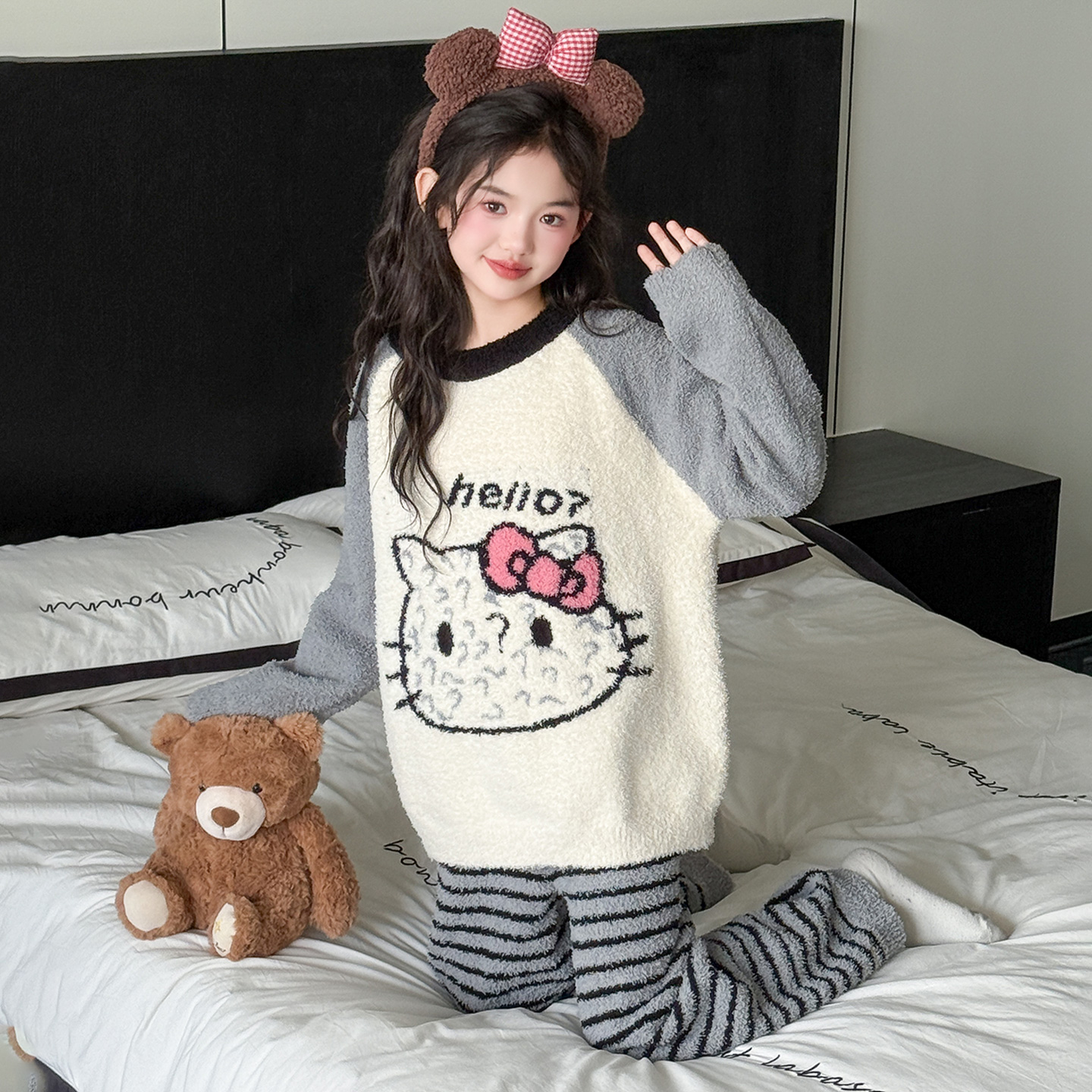 儿童睡衣女孩2025新款女童半边绒家居服青少年冬季珊瑚法兰绒套装