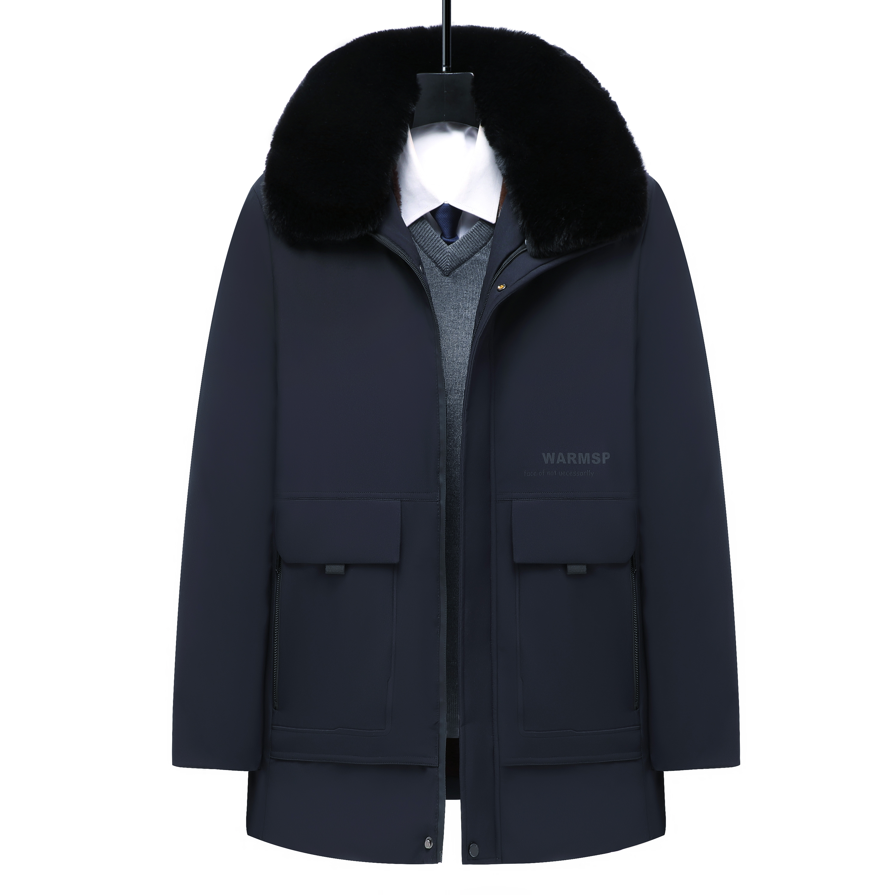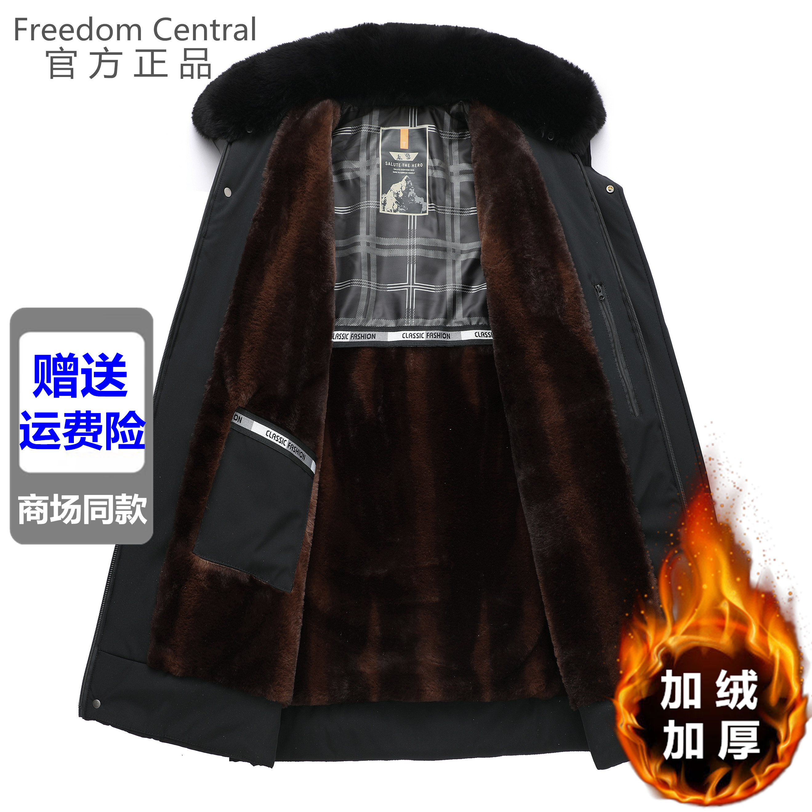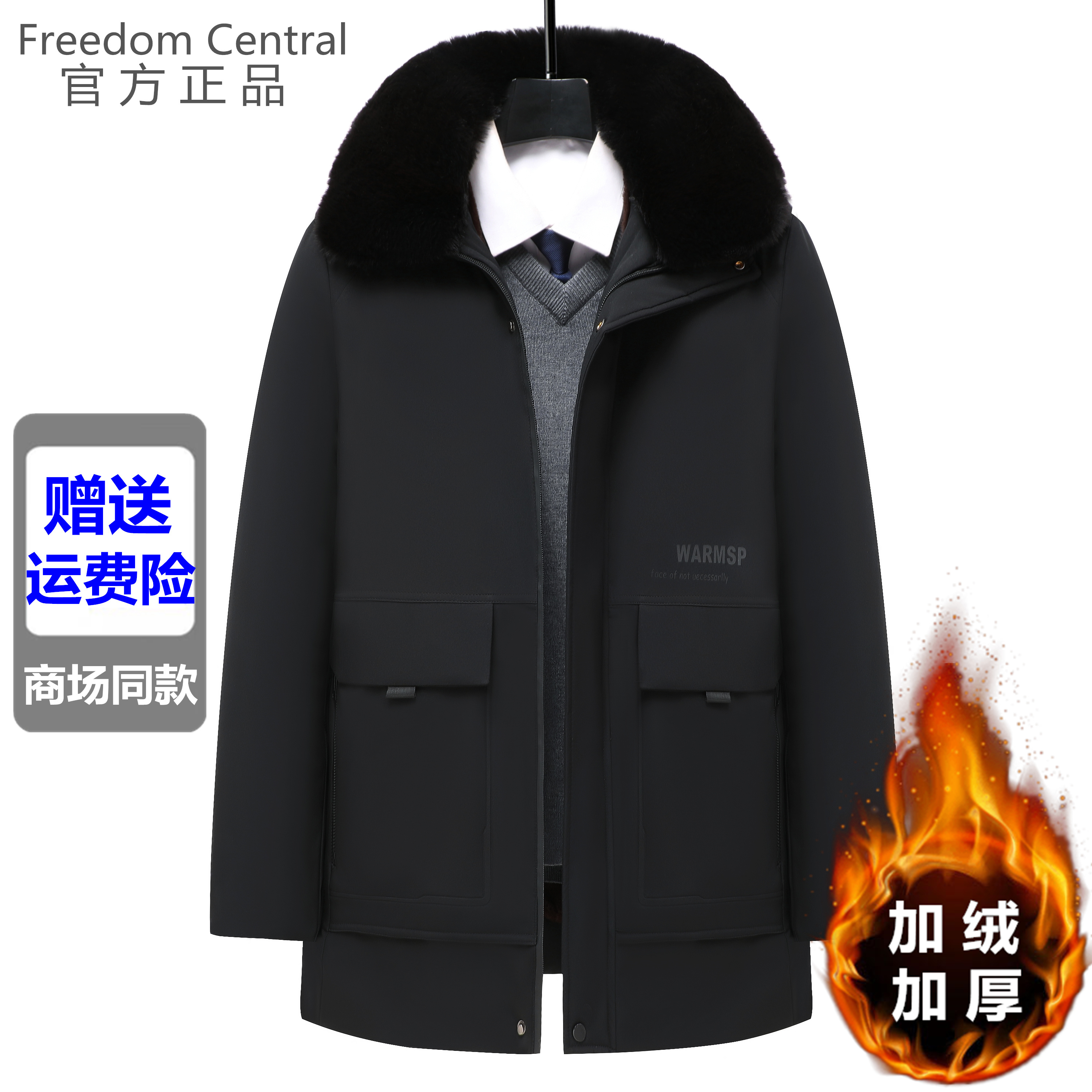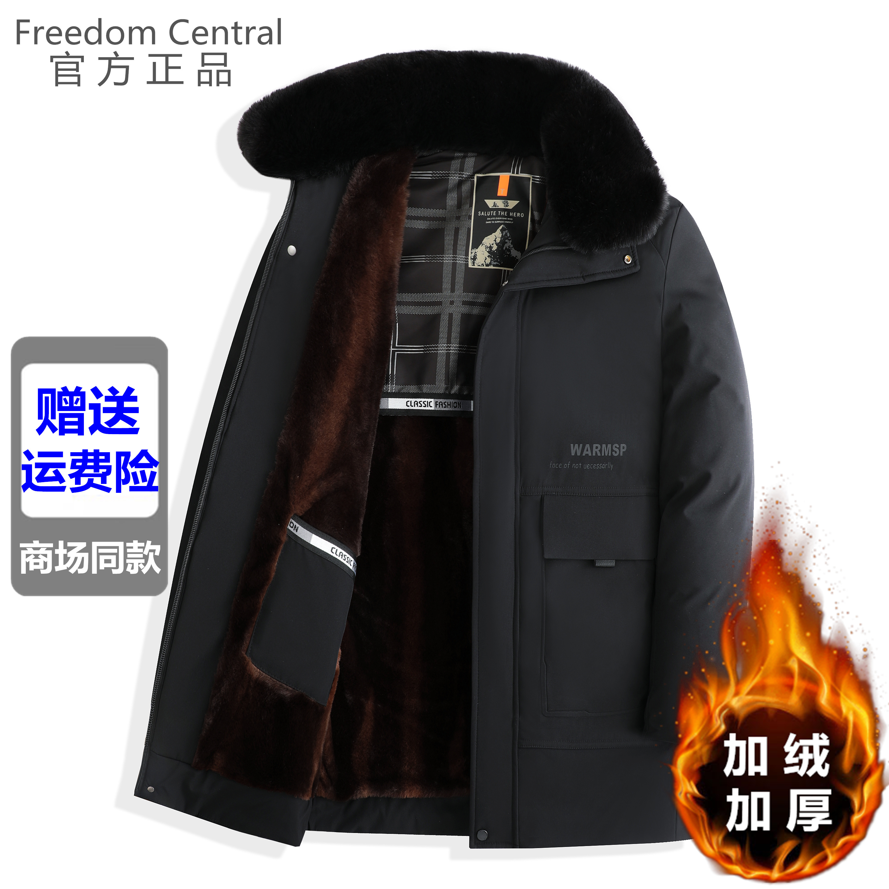 【毛领可拆卸】品牌男士羽绒棉服中长款加绒加厚棉衣中老年爸爸装