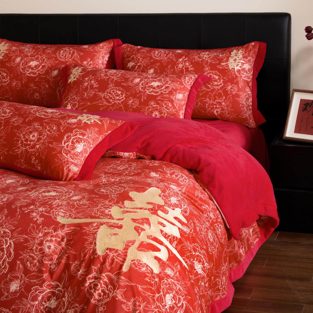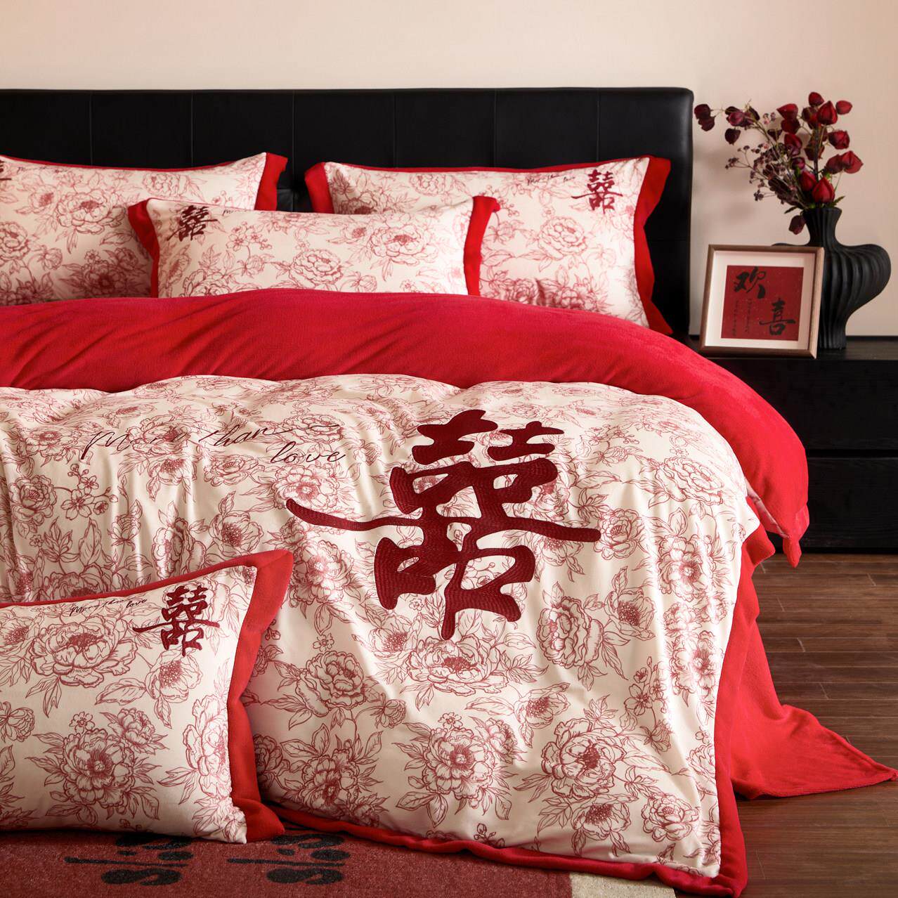 新婚牛奶绒四件套结婚红色被套冬季防静电珊瑚绒床单婚庆陪嫁床品