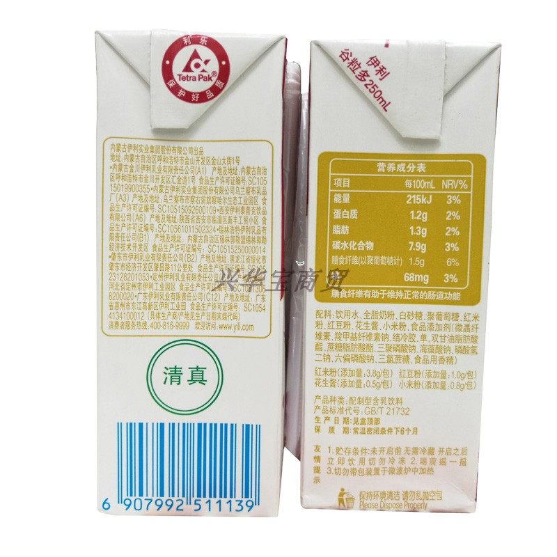 热销伊利牛奶红谷粒多红豆红花生米均衡谷物早餐甜奶250*16盒整箱