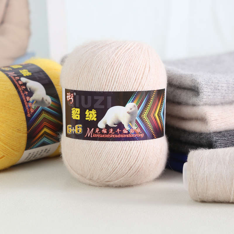 秋子 貂绒毛线6 6 貂绒线 手编机织羊绒线 diy羊绒线围巾线 包