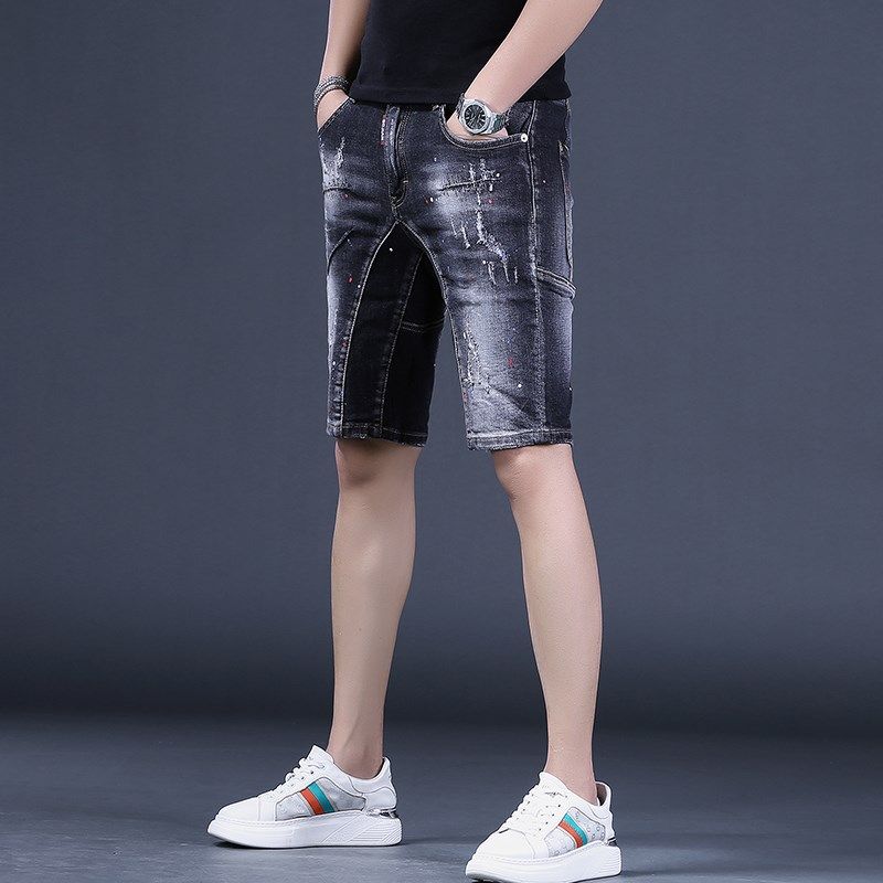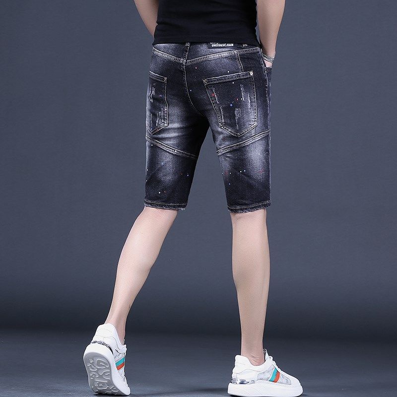 夏季高端潮牌破洞牛仔短裤男士五分裤5分裤个性弹力修身潮流马裤
