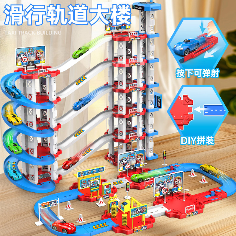 儿童轨道车停车场汽车玩具城市高楼吊塔小男孩益智搭建礼盒装礼物