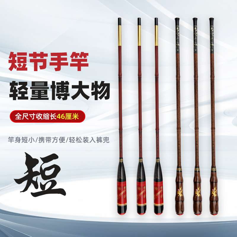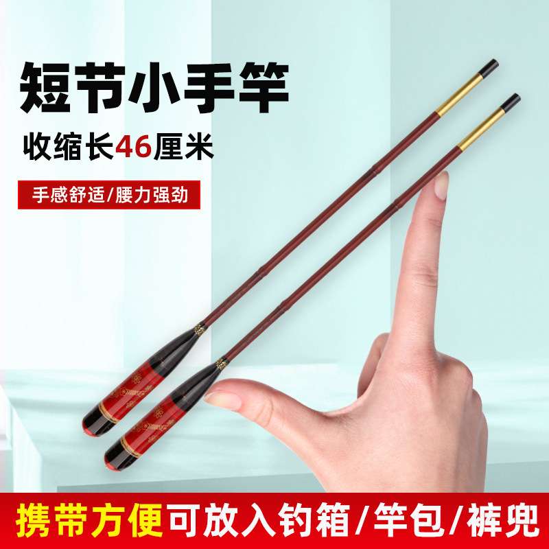 钓鱼竿超短节鱼竿收缩46cm超轻超硬竹节碳素手竿短节袖珍溪流竿