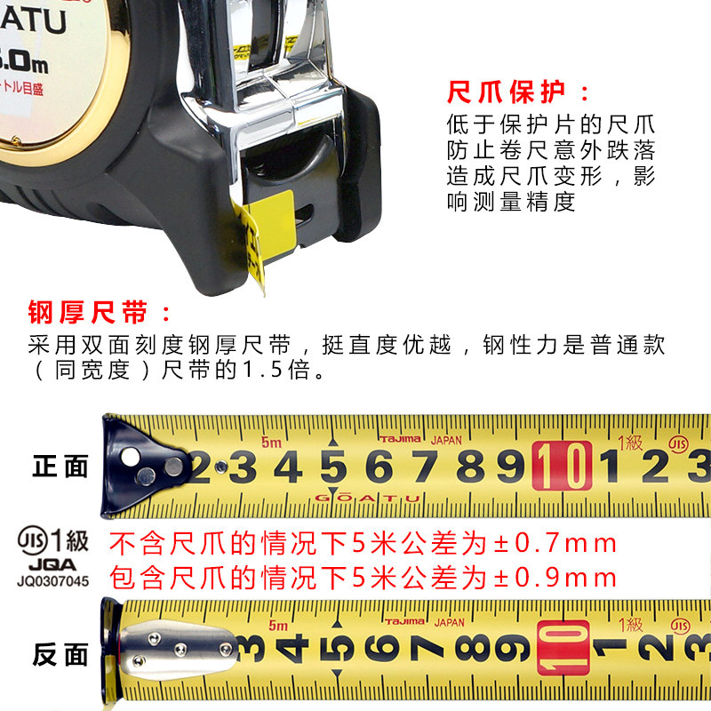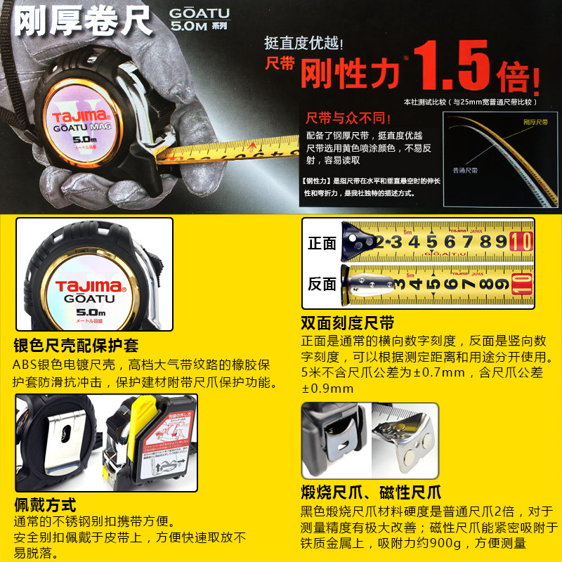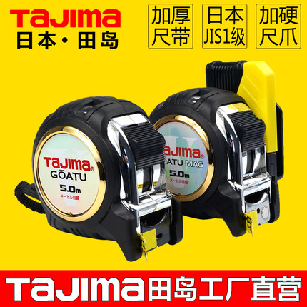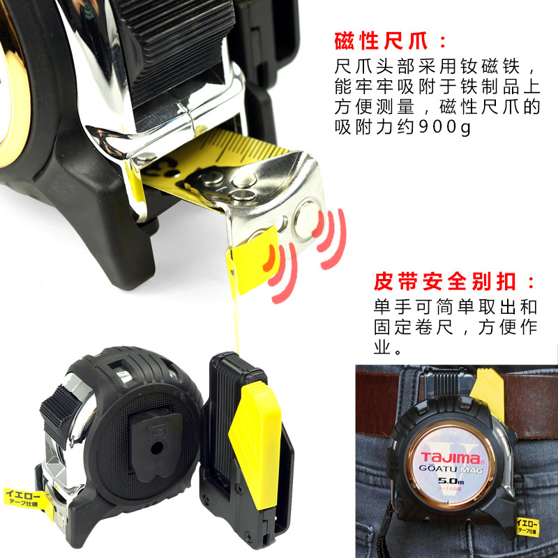 日本Tajima田岛卷尺5米钢卷尺高精度防滑抗摔黄色双面刻度高精度