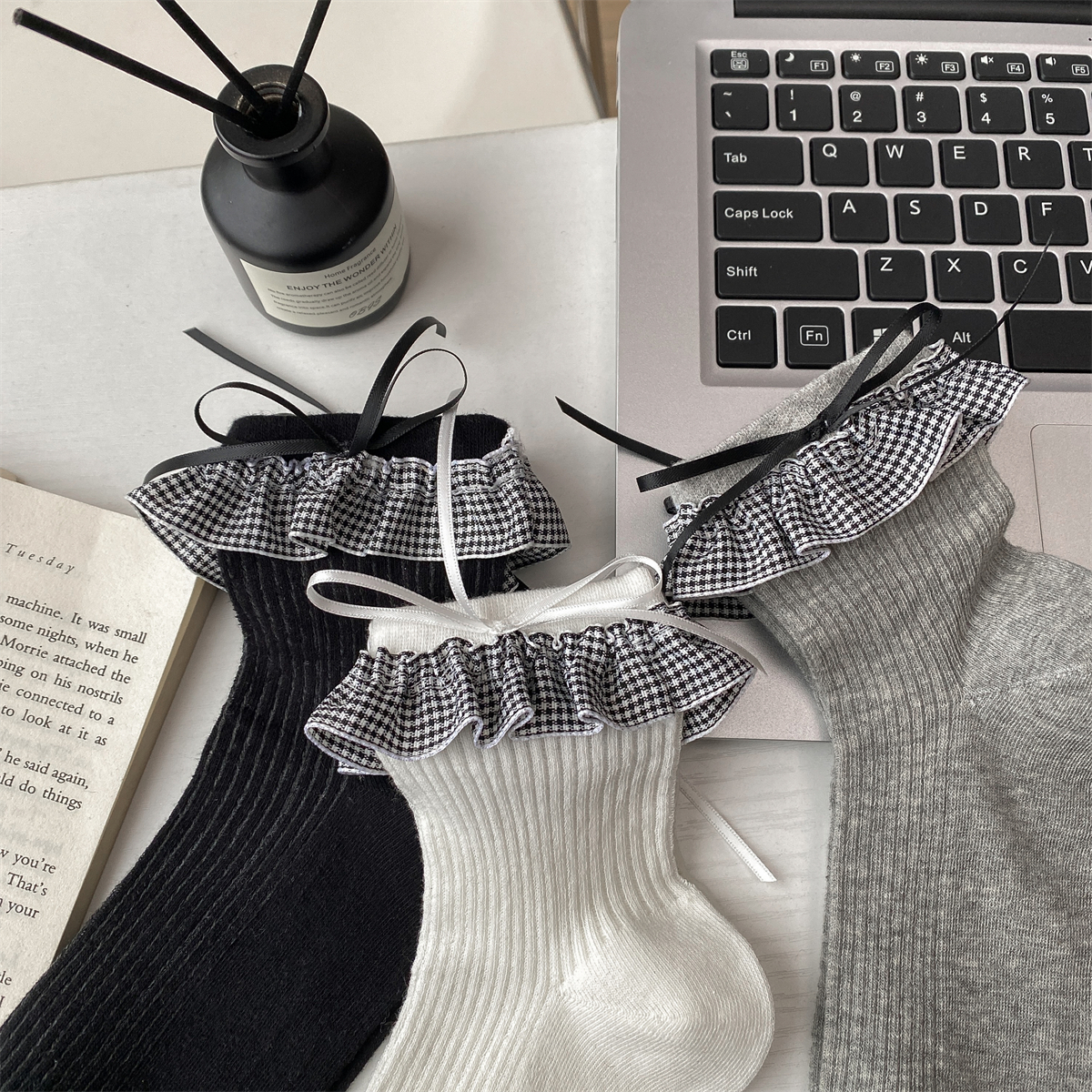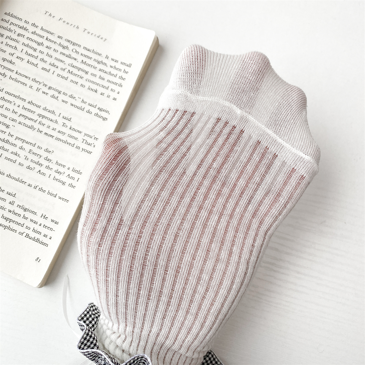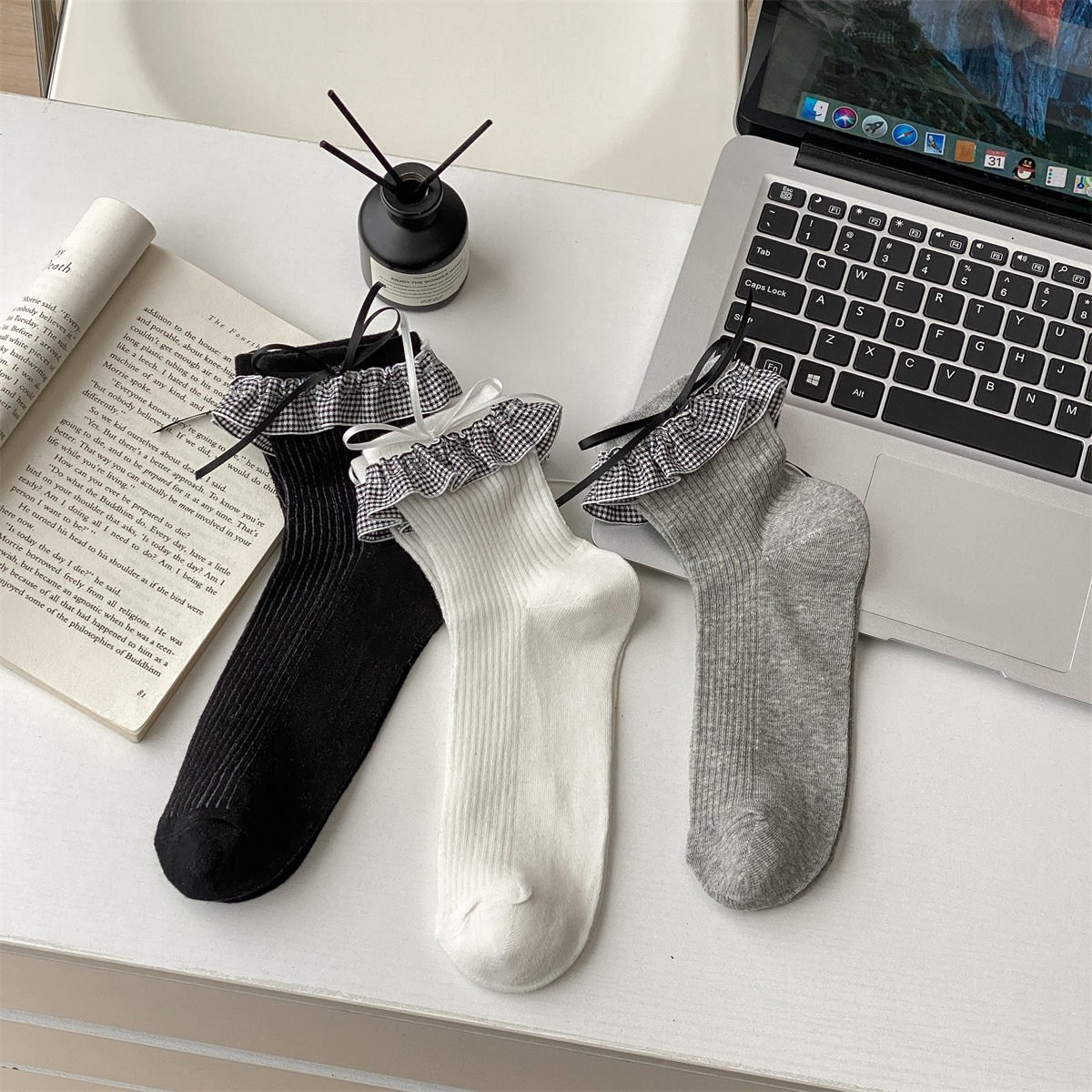 女士超薄蝴蝶结蕾丝花边装饰袜 中筒袜