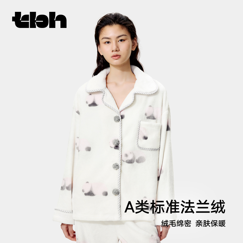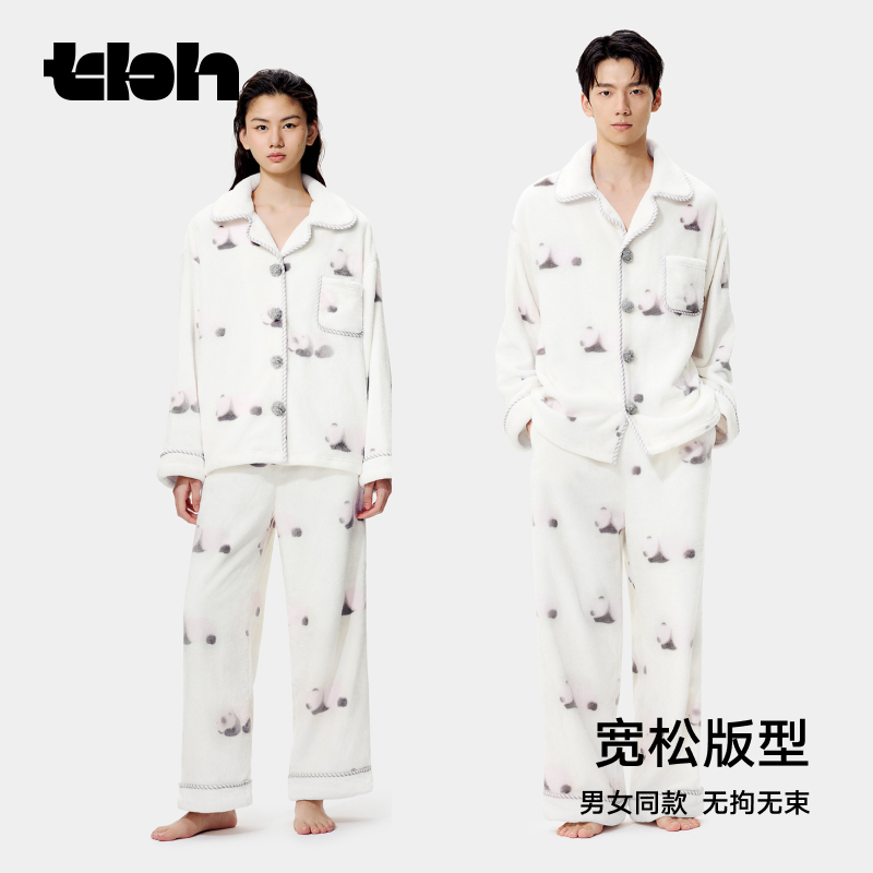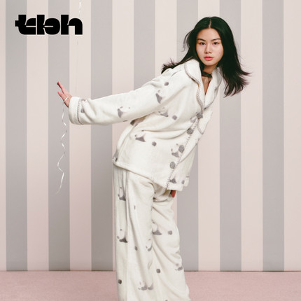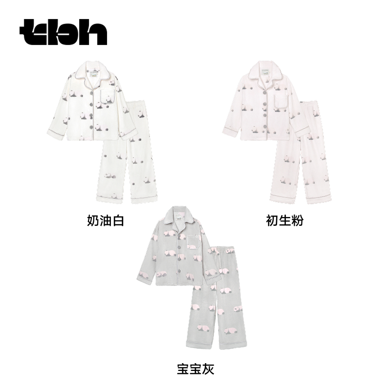 tbh野兽派家居熊猫嘭嘭法兰绒家居服套装秋冬加厚可外穿睡衣女