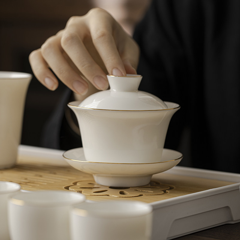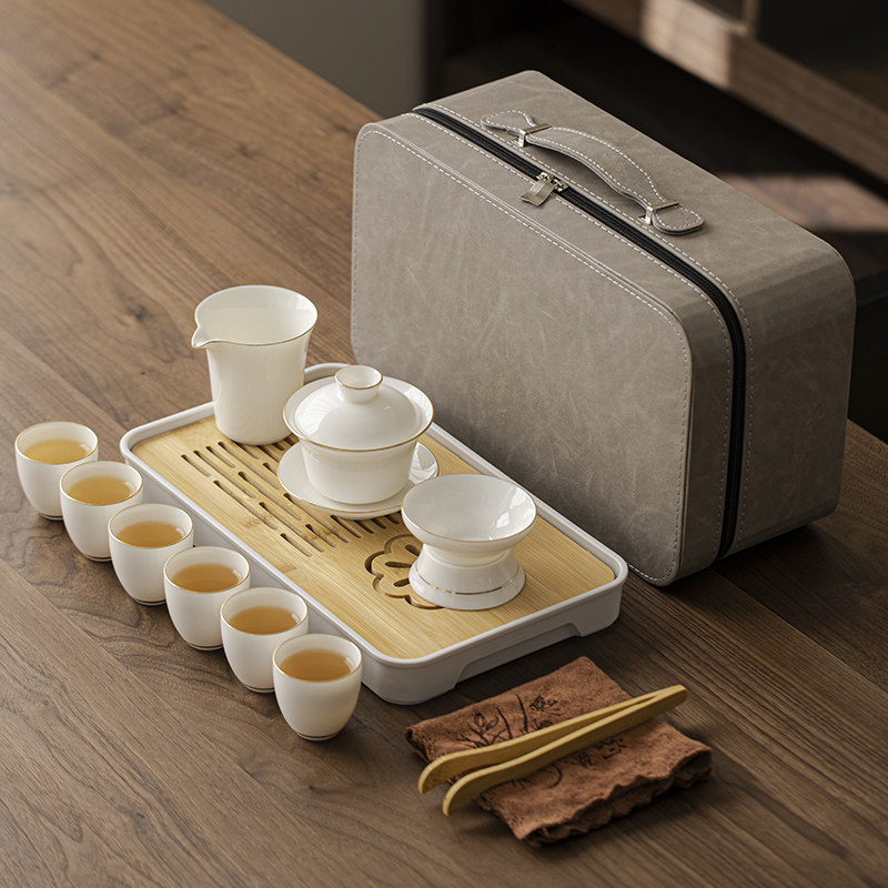 羊脂玉白瓷旅行功夫茶具套装德化家用户外便携式包泡茶杯盖碗定制