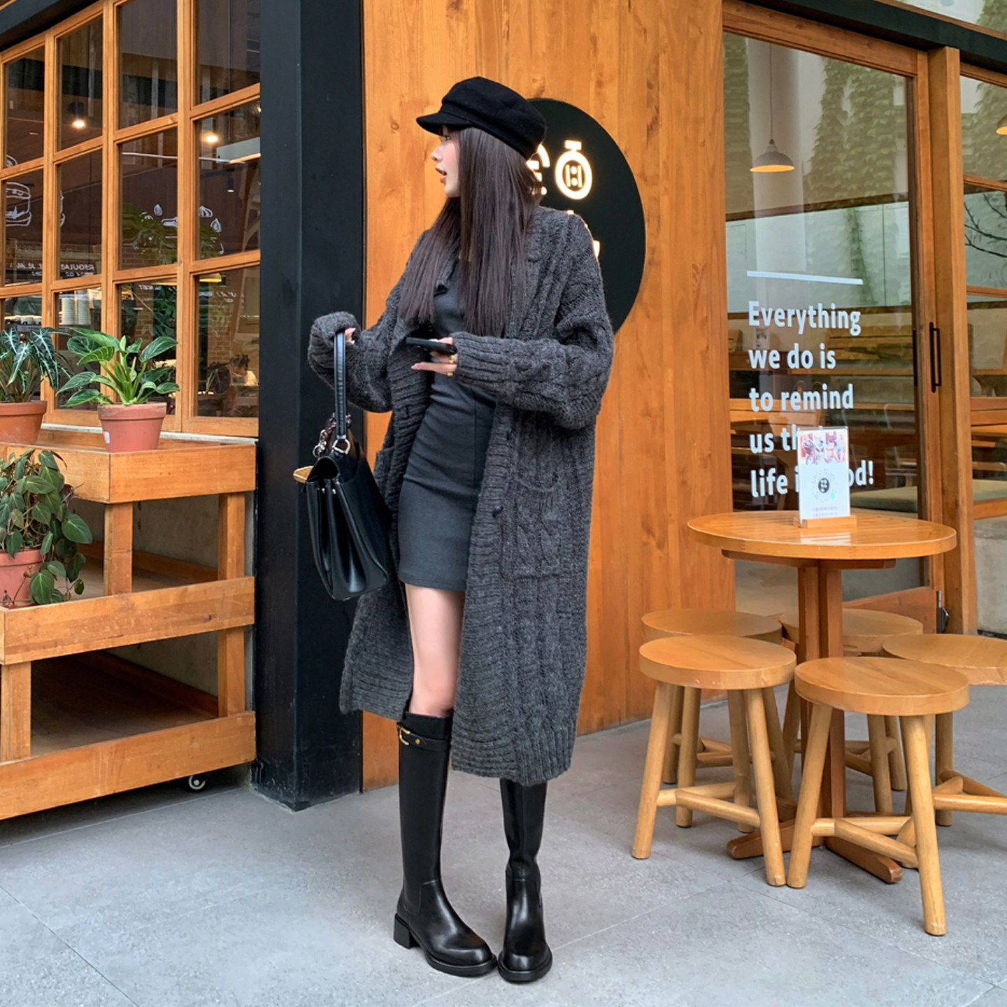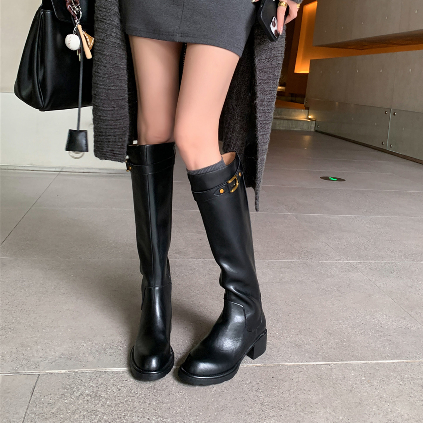 百搭款复古牛皮高筒骑士靴超轻便