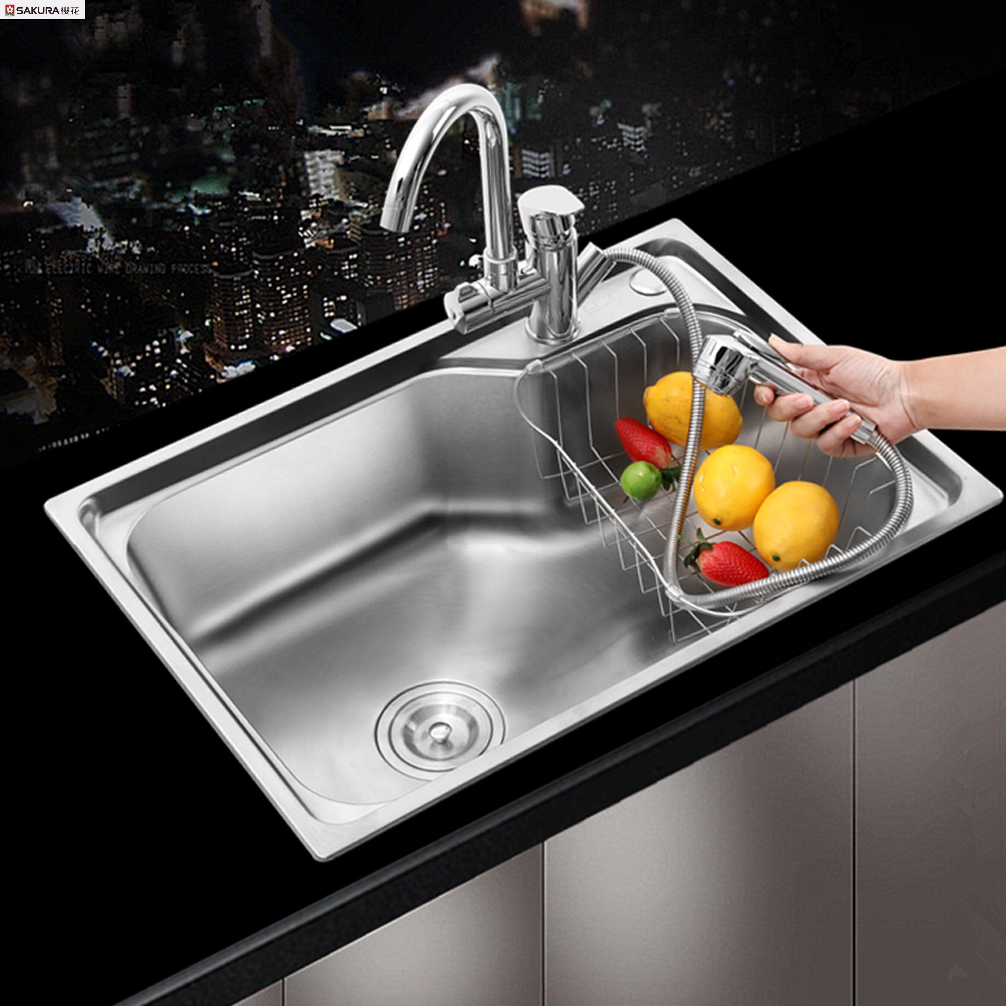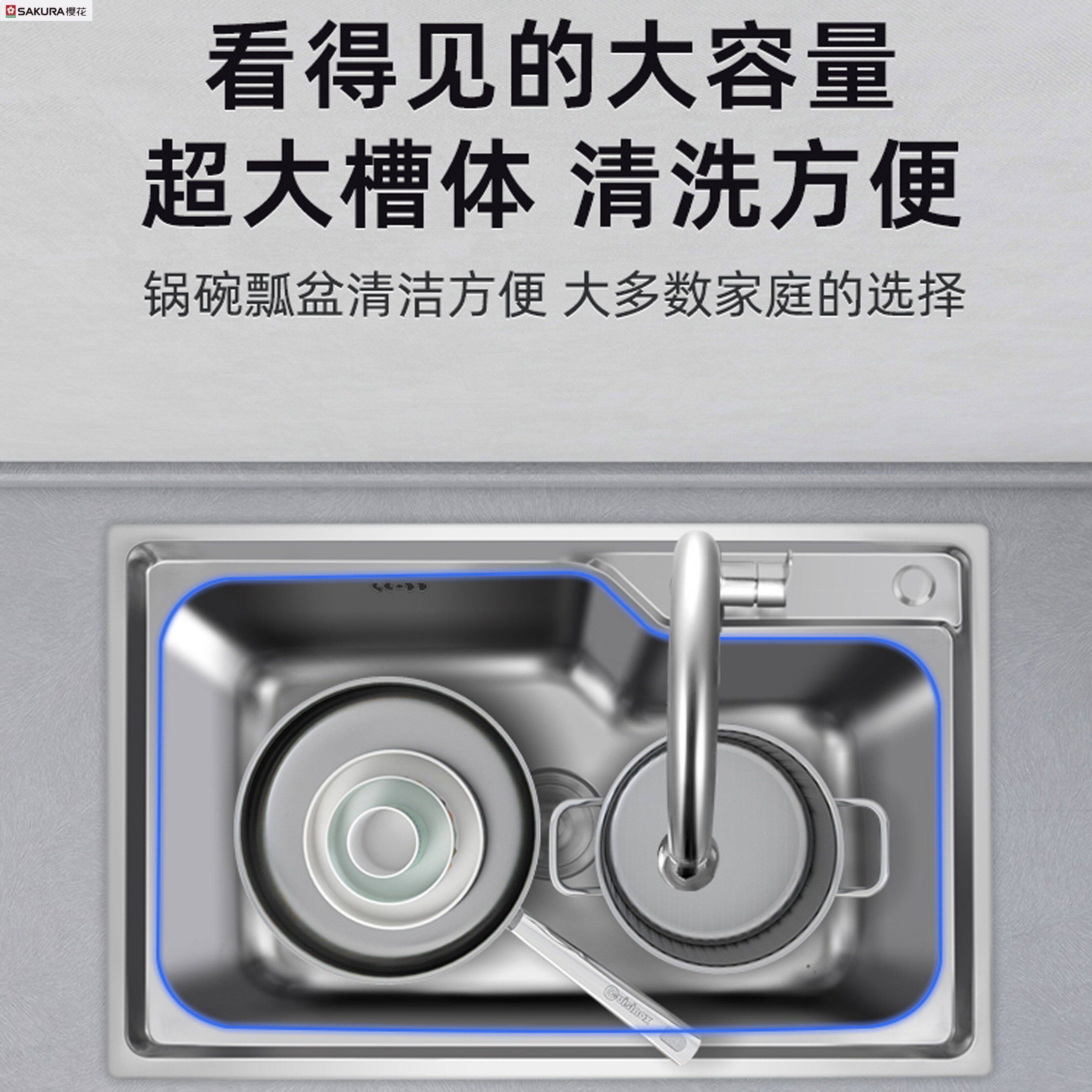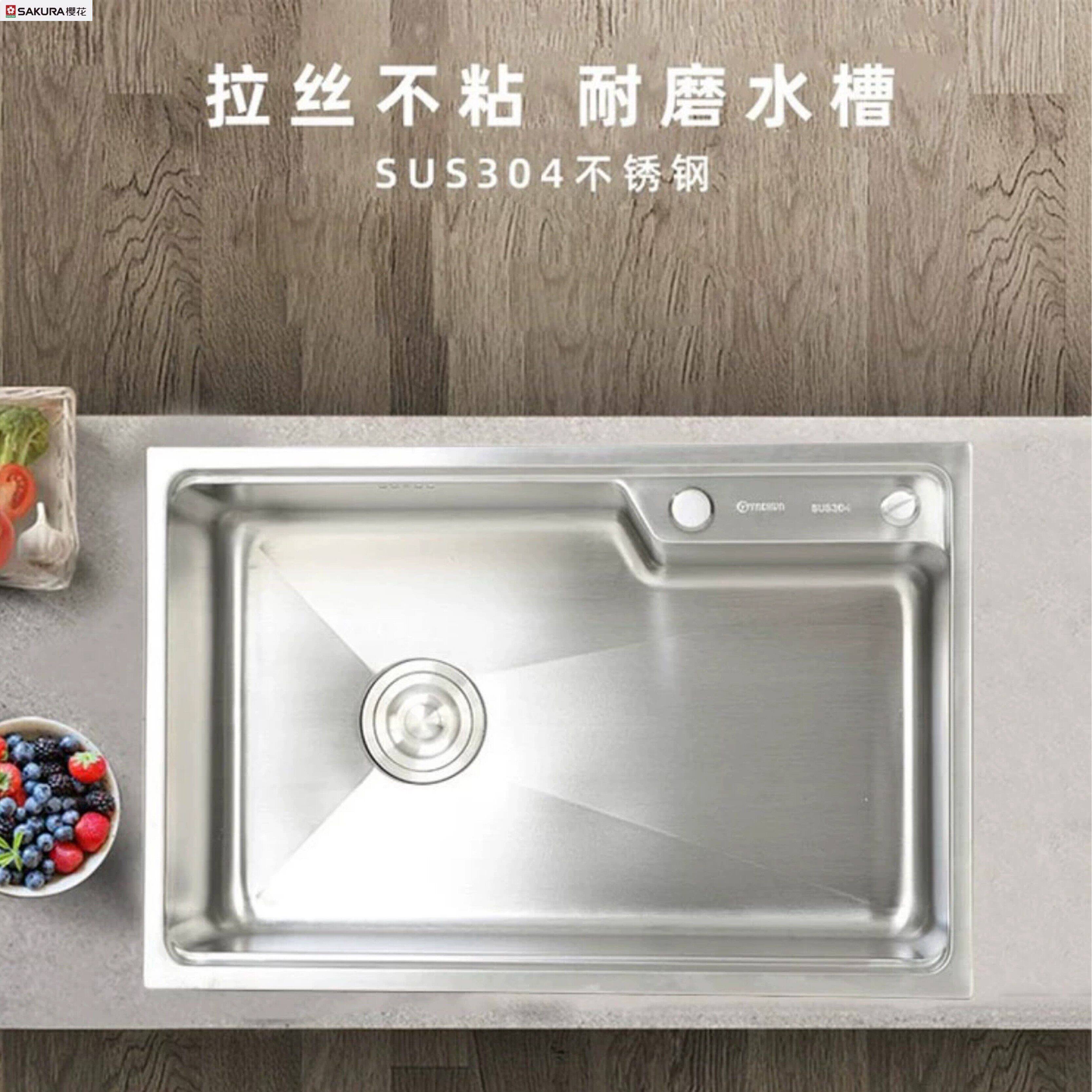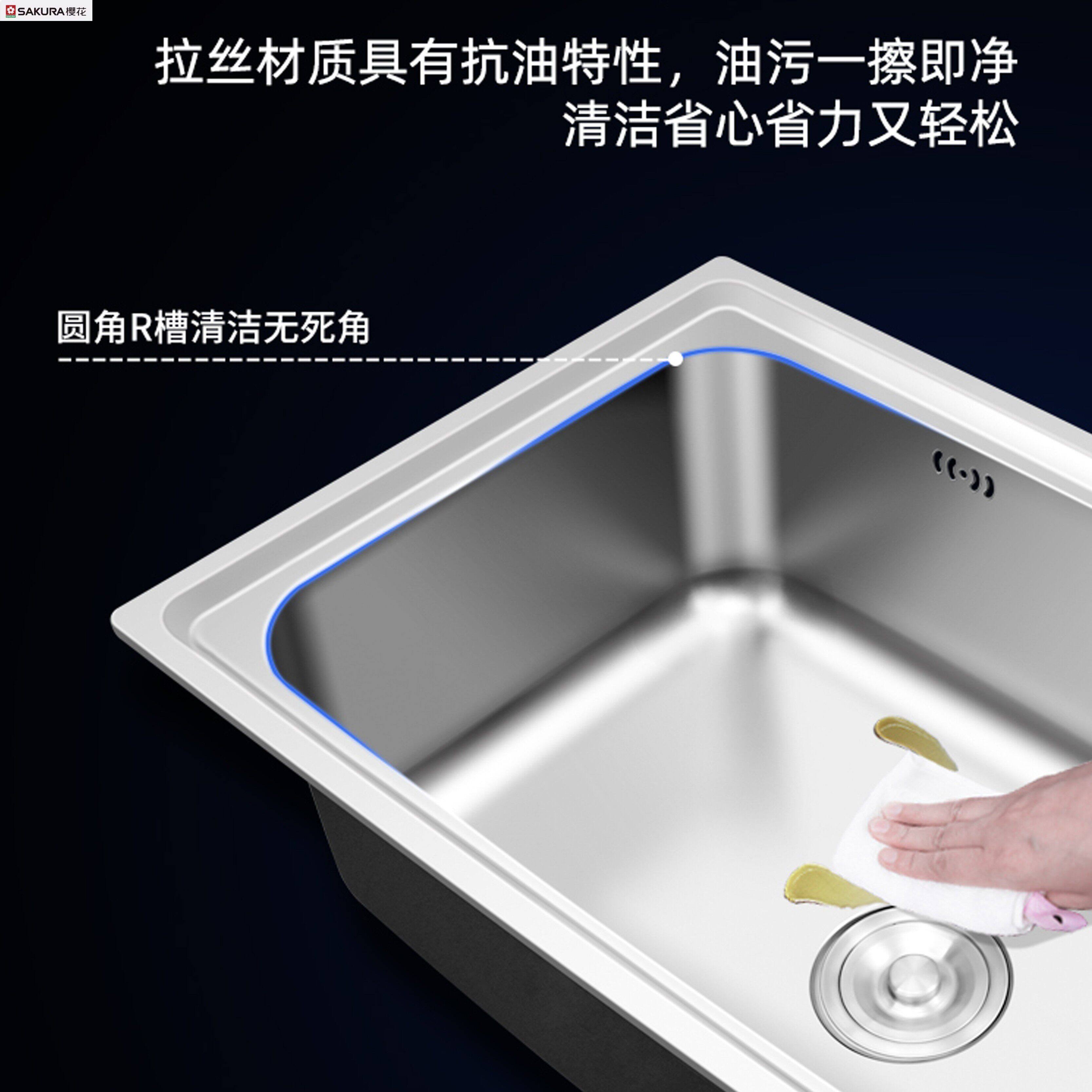 樱花加厚304不锈钢厨房大单盆拉丝洗菜盆洗菜水池