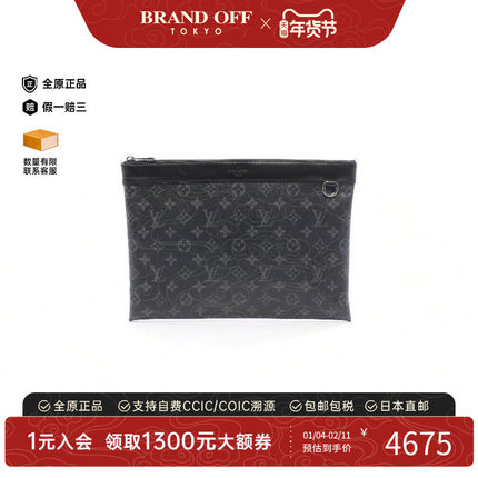 中古LV路易威登男包A级95新Discovery涂层/防水帆布手拿包黑色