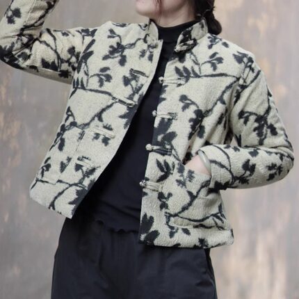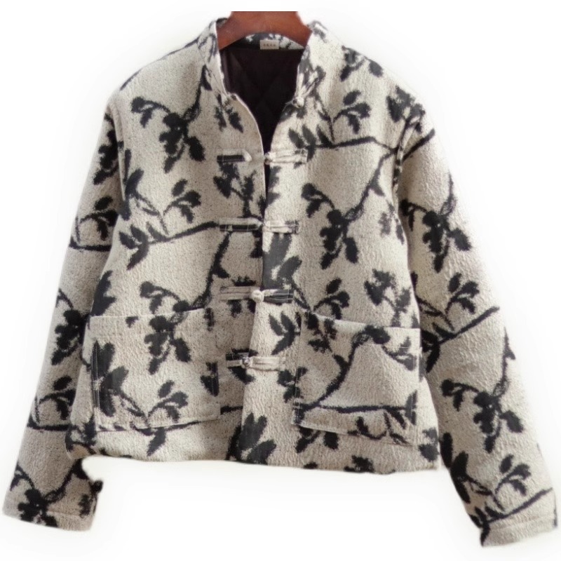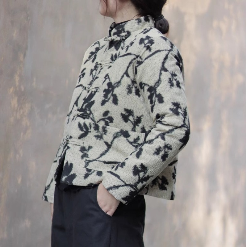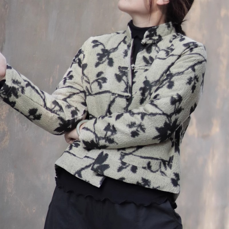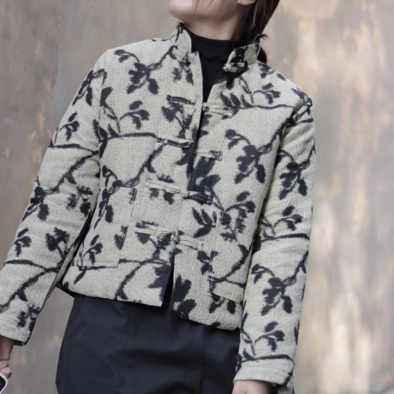 中式复古盘扣提花棉衣女秋冬薄棉服外穿立领短款小外套~清仓现货