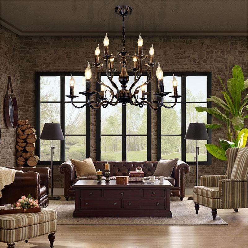 吊灯美式覆古咖啡店客厅灯饭厅新款双层店铺民宿灯具工业风蜡烛灯