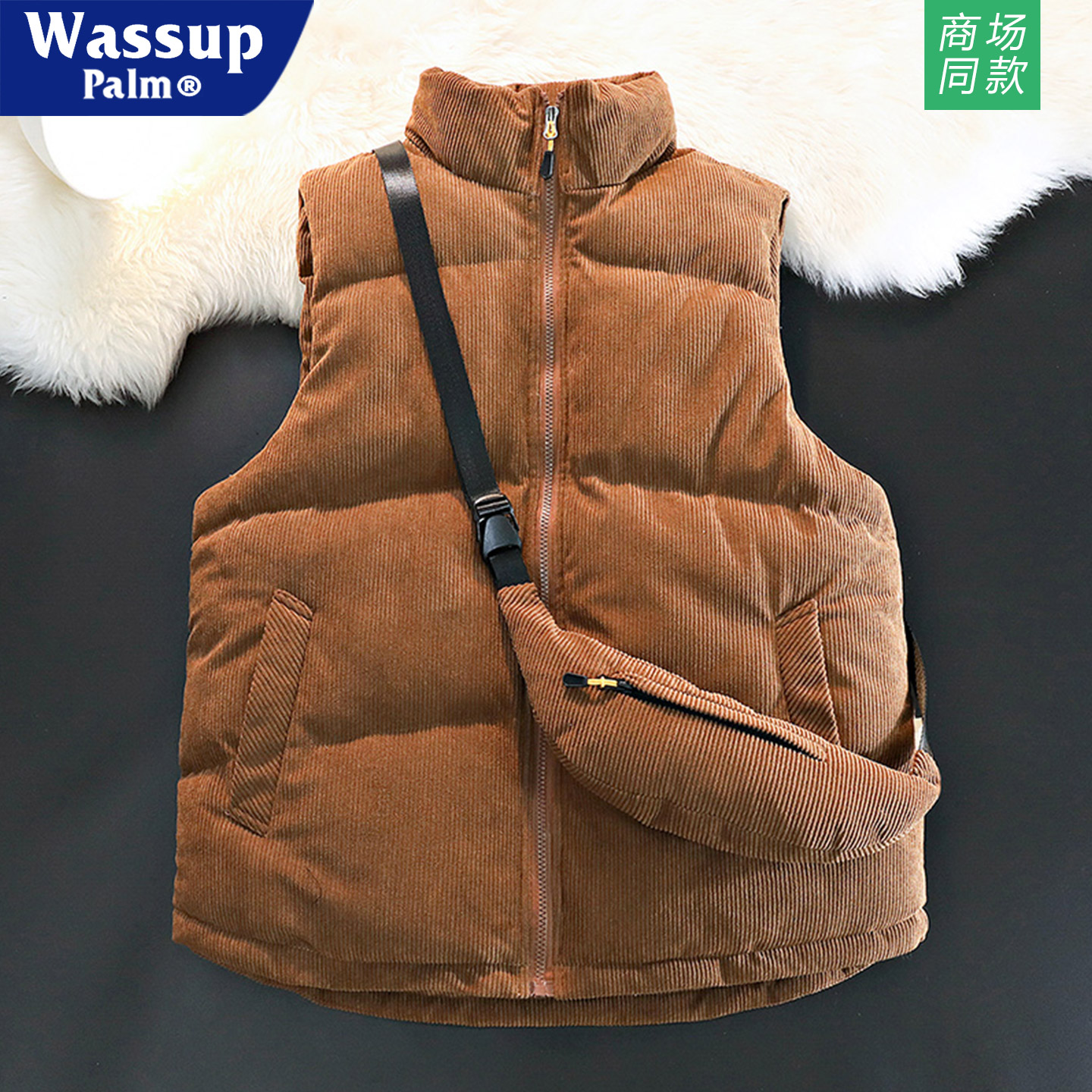WASSUP PLAM马甲男女2025新款秋冬季松休闲立领坎肩条纹保暖外套