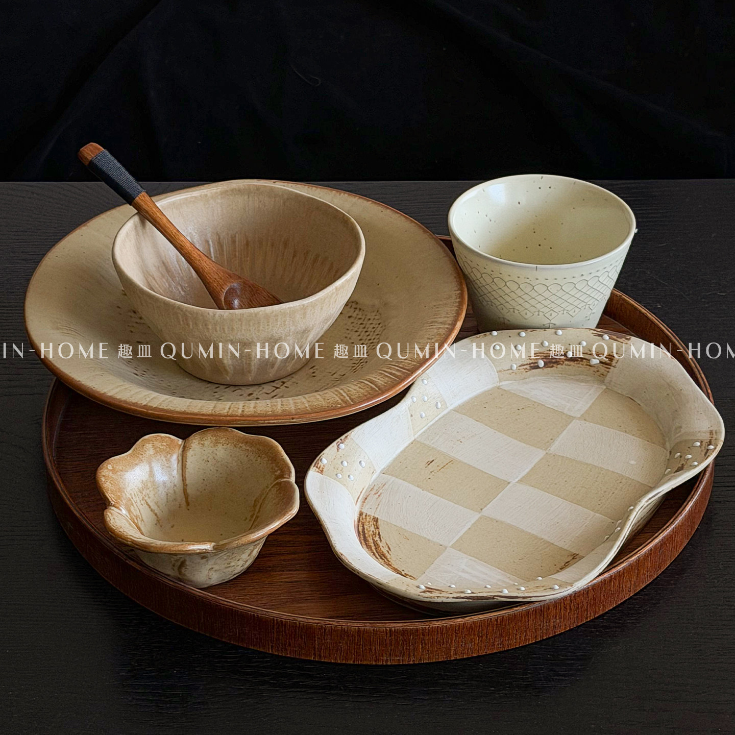 趣皿中古系列一人食陶瓷餐具家用米饭碗瓷器套装汤碗西餐盘子水杯