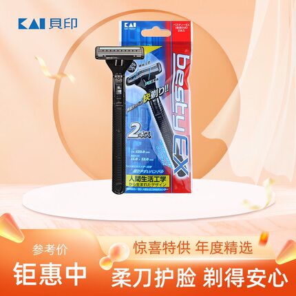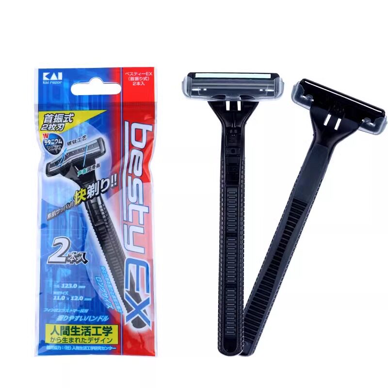 日本贝印男士手动剃须刀2支装2层刀头全身水洗剃刀刮胡刀刮脸刀