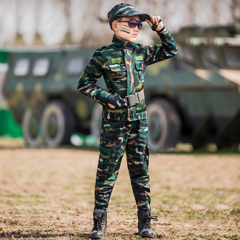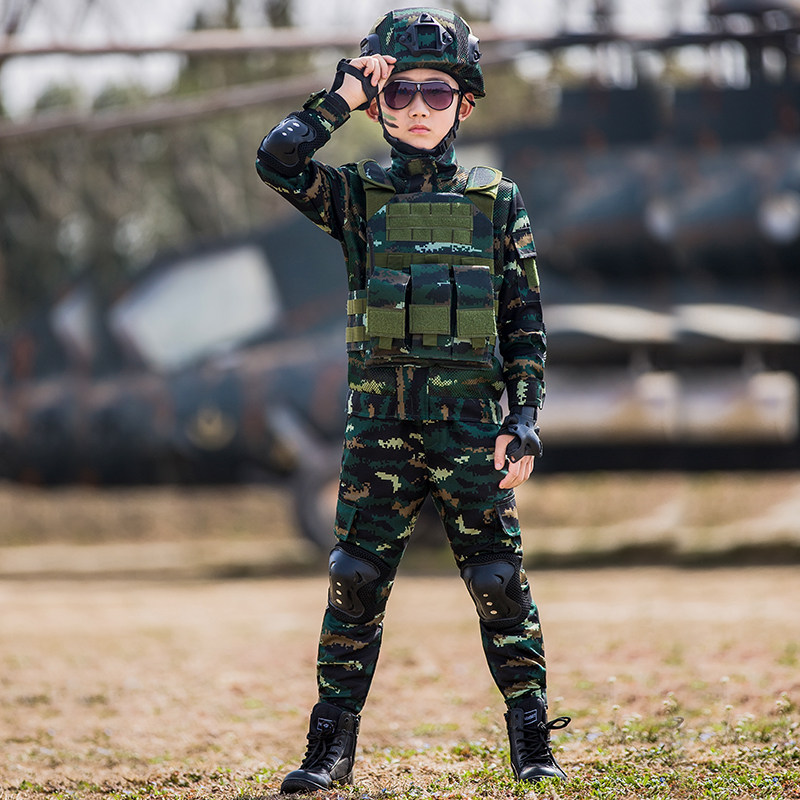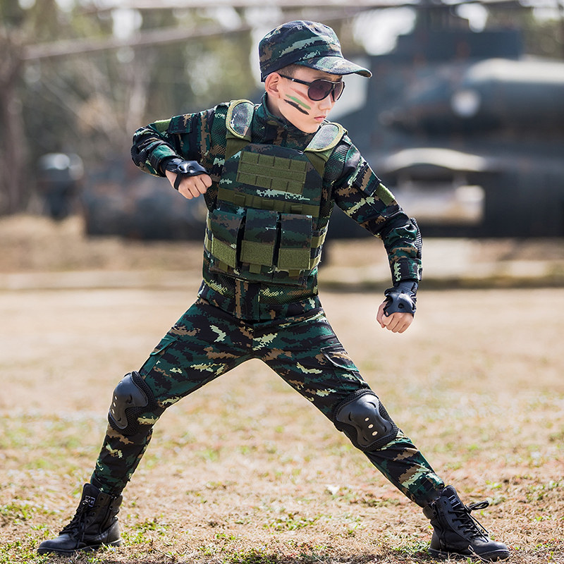 夏季儿童迷彩服套装男短袖镂空透气夏令营户外特种兵表演出服女孩