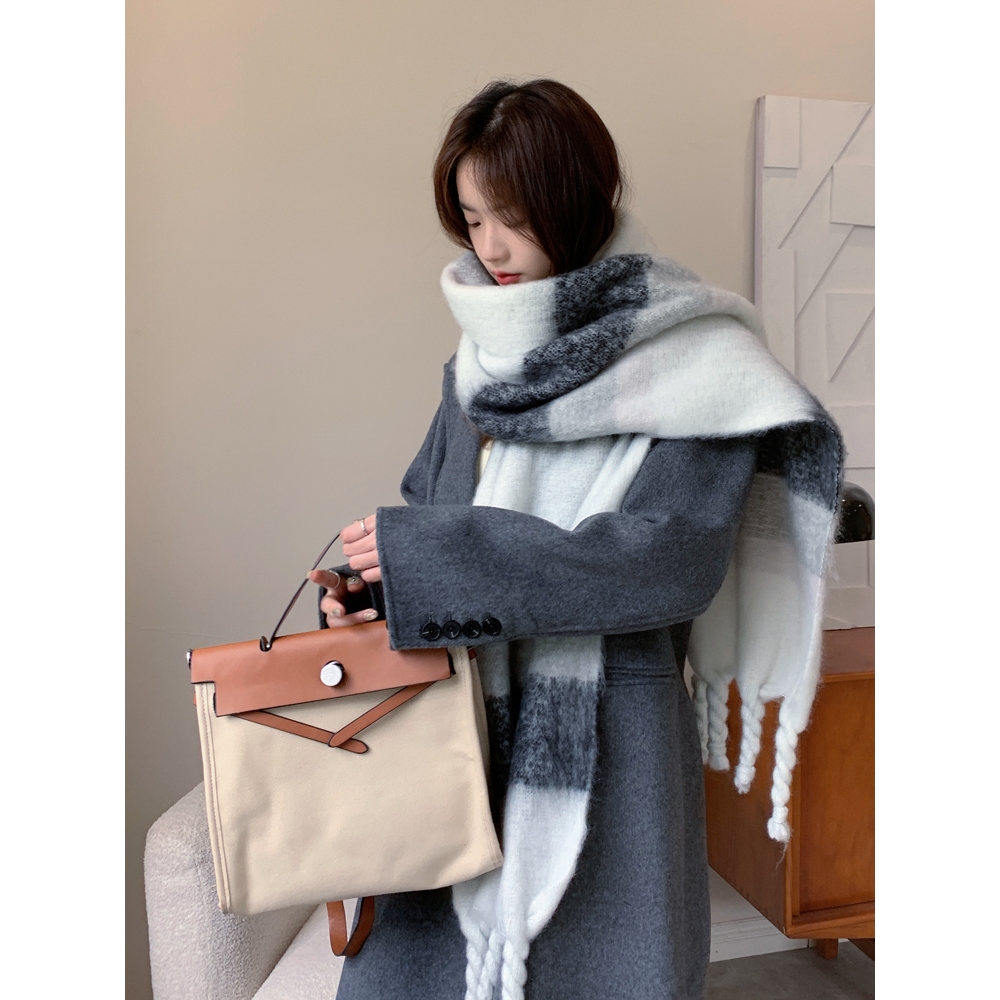 2024新款大辫子流苏围巾女秋冬季韩版百搭渐变拼色保暖毛毛围脖潮