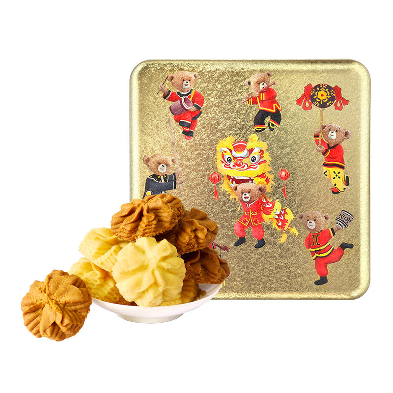 香港特产珍妮曲奇聪明小熊饼干咖啡奶油小花曲奇双味礼盒装220g