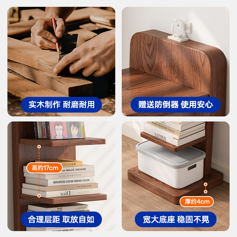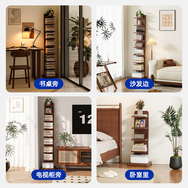 实木书架落地置物架客厅夹缝立式简易书柜转角靠墙多层杂志收纳架