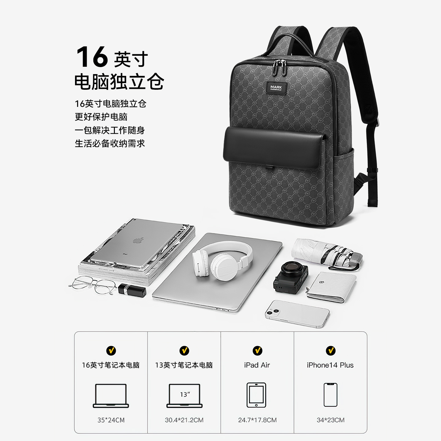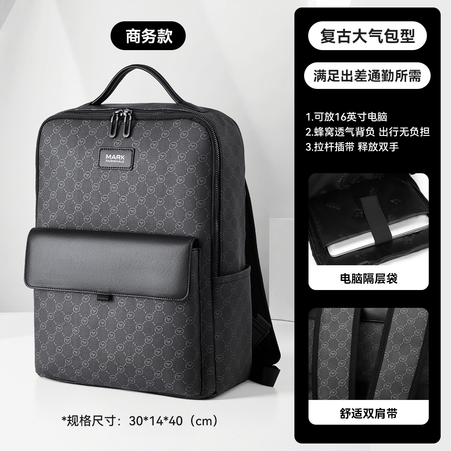 马克华菲休闲商务双肩背包男士