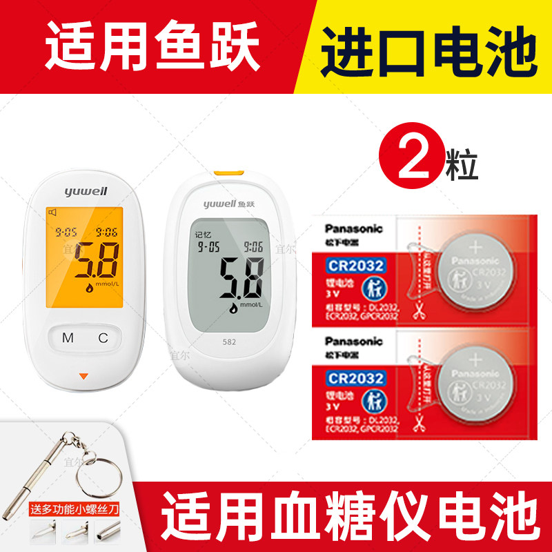 适用鱼跃血糖仪测试电池CR2032 306 520 550 580 586 590 710 720 740 770专用纽扣3v电子 悦好1型2悦准II型
