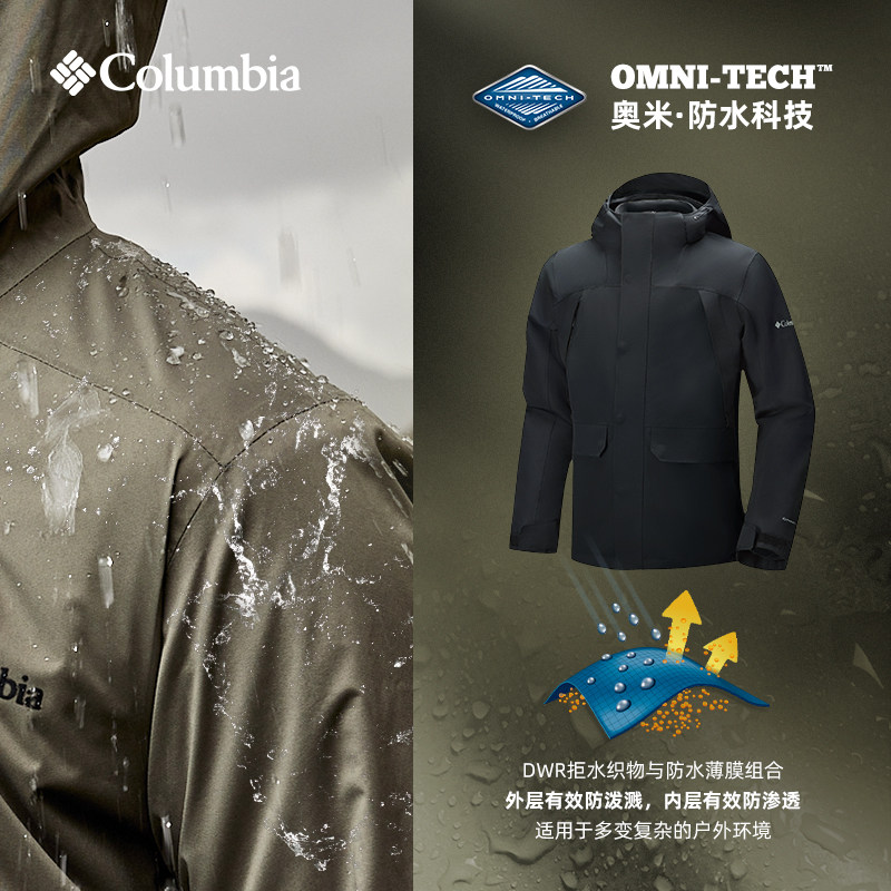 哥伦比亚户外羽绒外套男士700蓬金点鹅绒内胆三合一冲锋衣XE0098