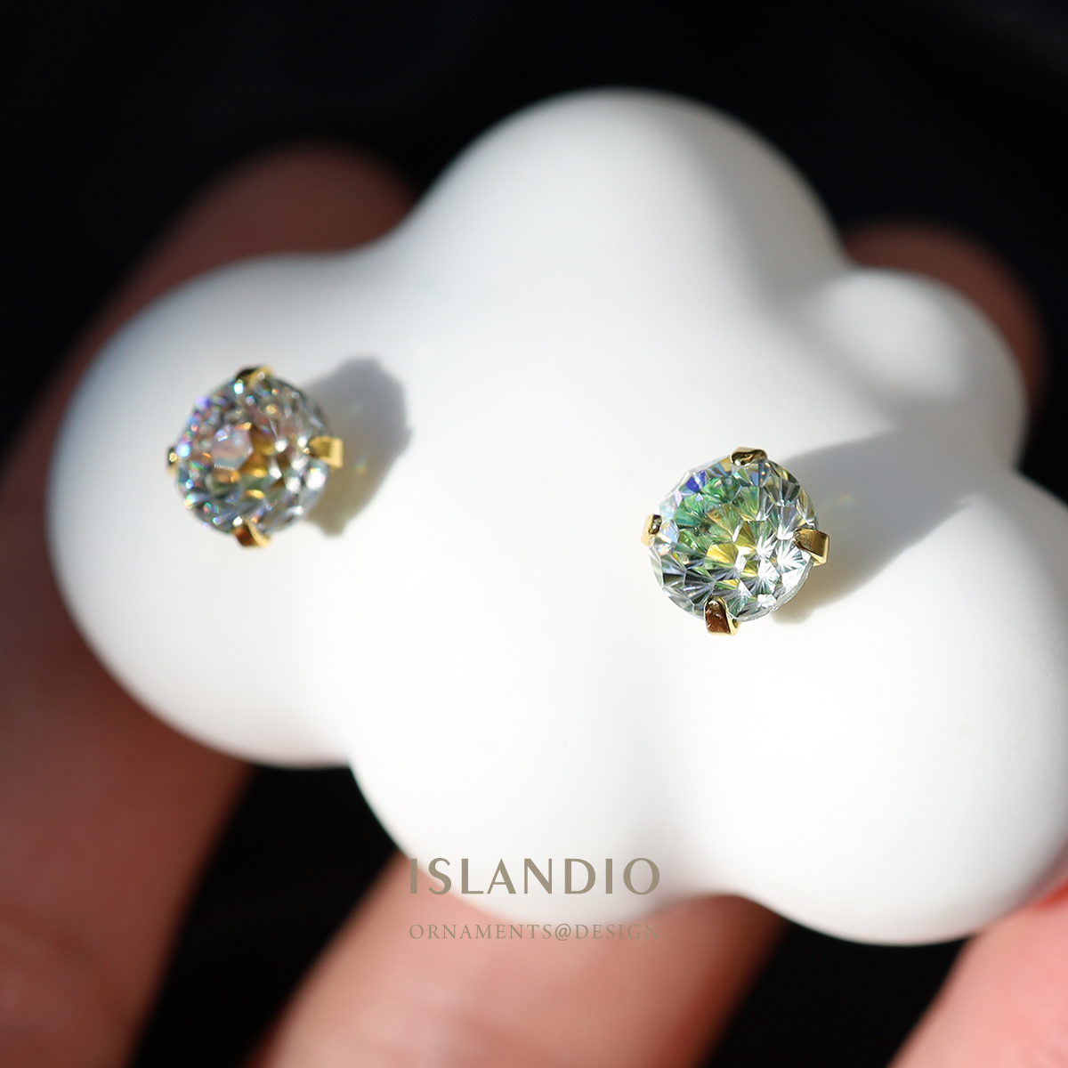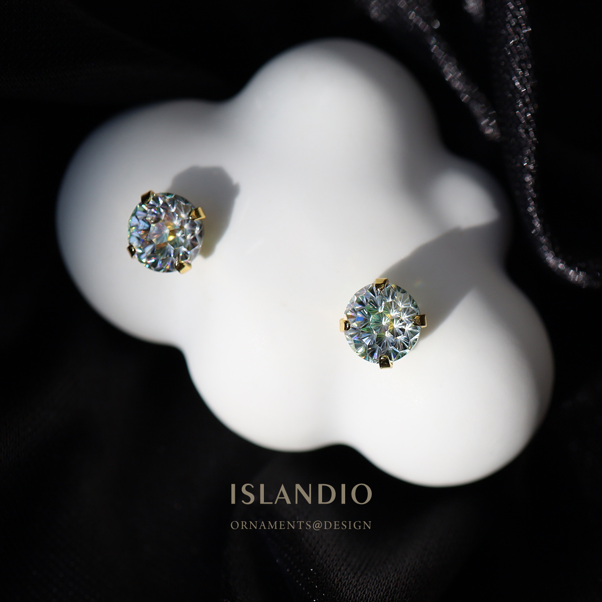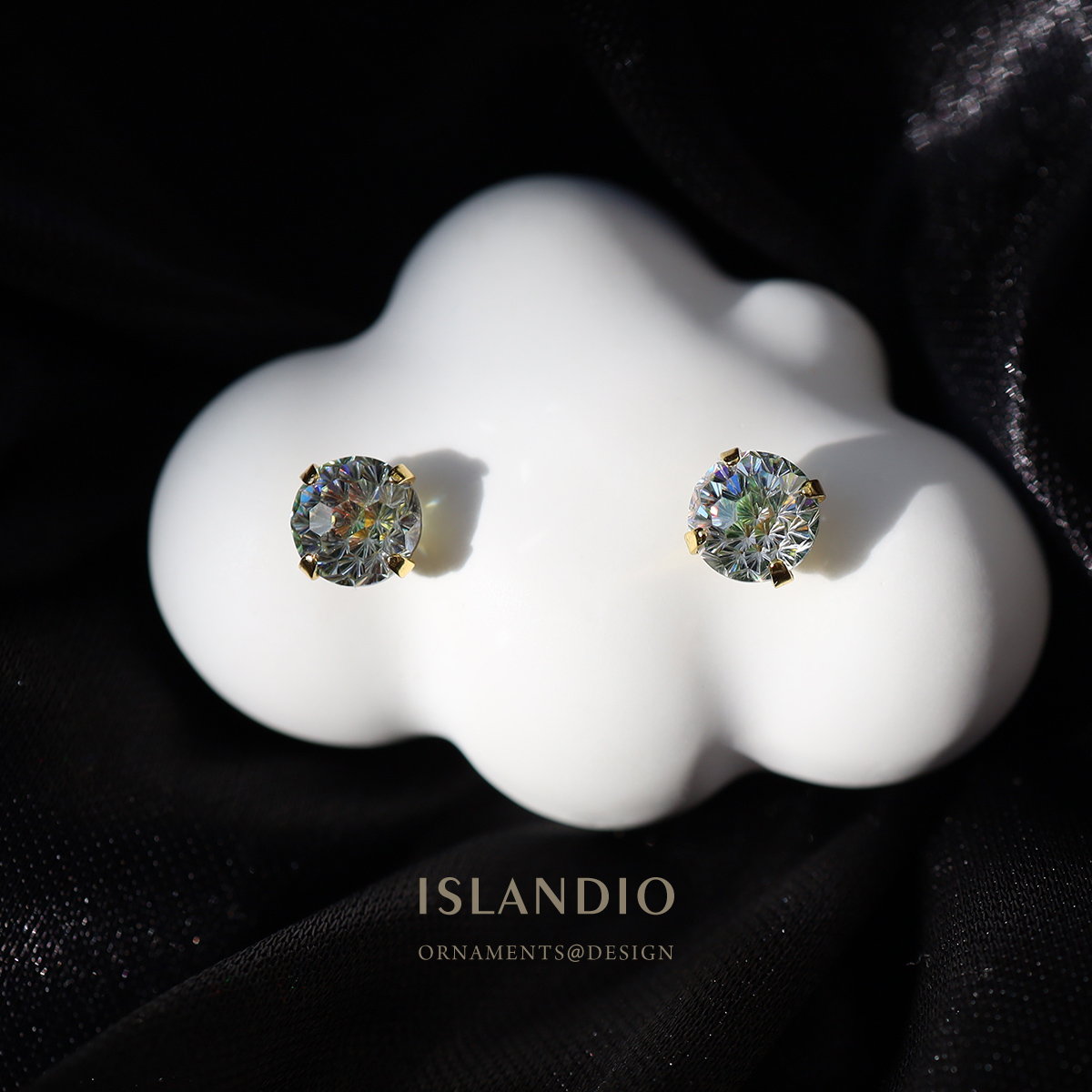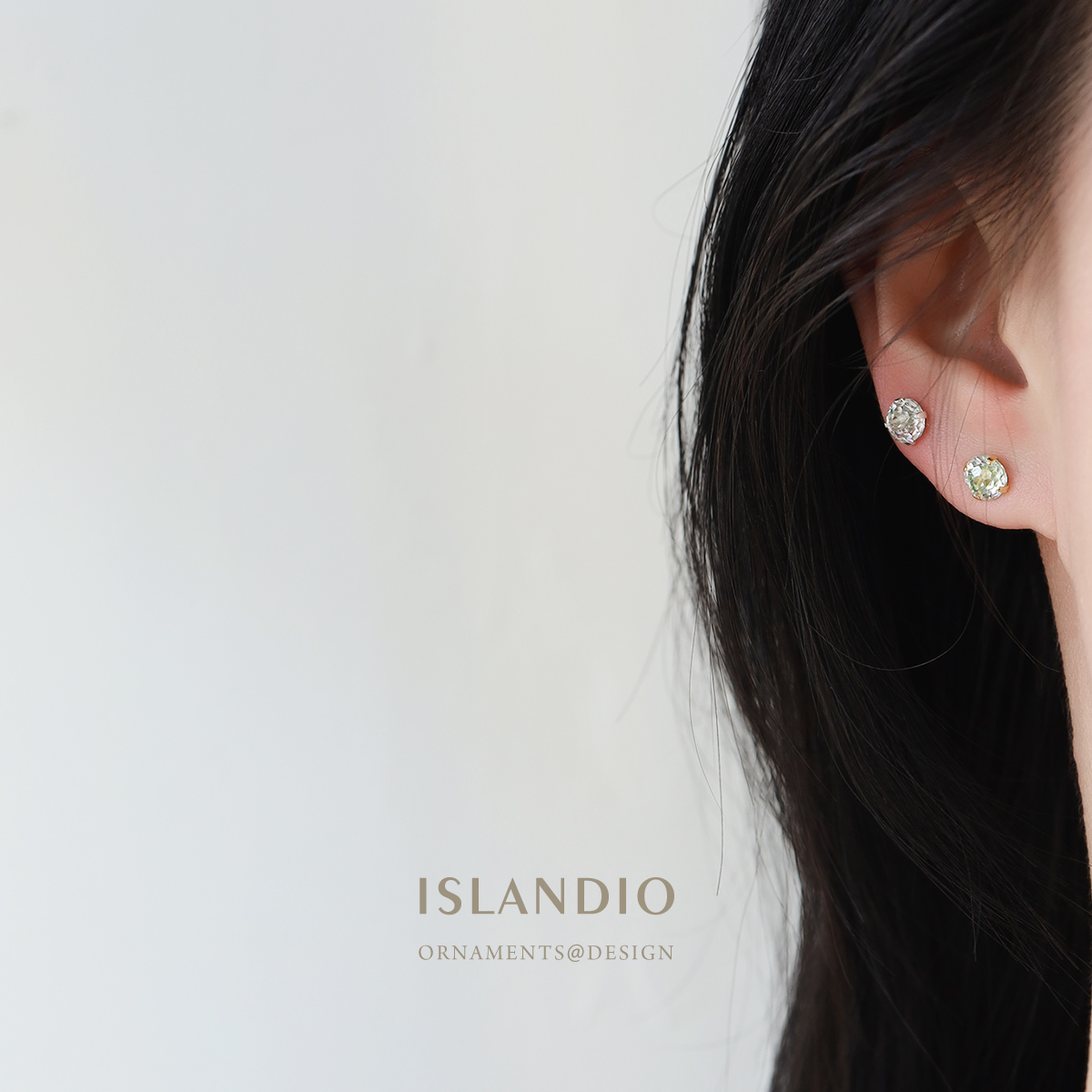 ISLANDIO森系精灵宝石纯银耳钉绿色烟花水晶金耳饰夏天耳骨钉男女