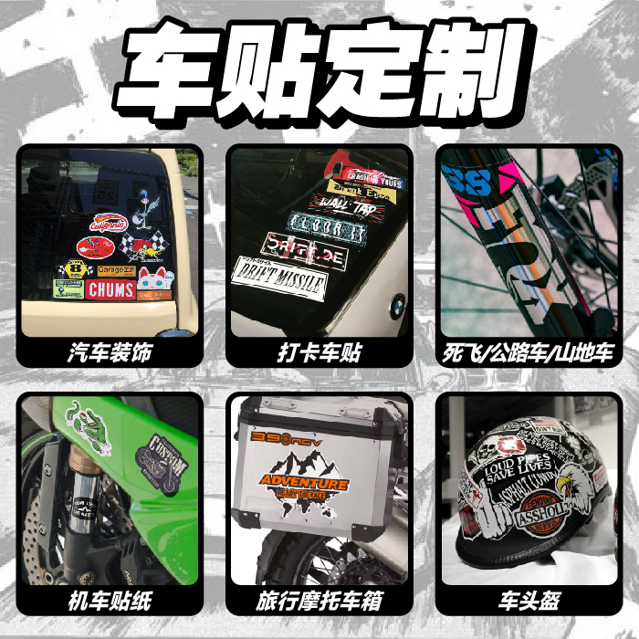 车贴定制车友会摩托车磁性反光贴画反光打卡文字LOGO设计后窗玻璃