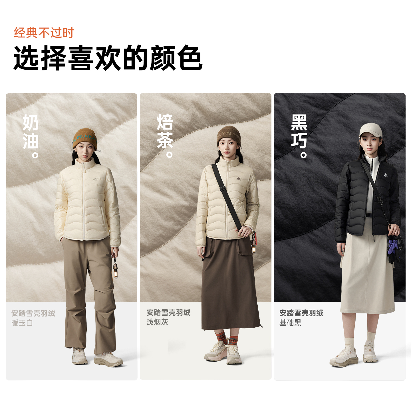 安踏大地之壳雪壳羽绒服女款冬季新款轻薄短款鹅绒保暖冲锋衣内胆