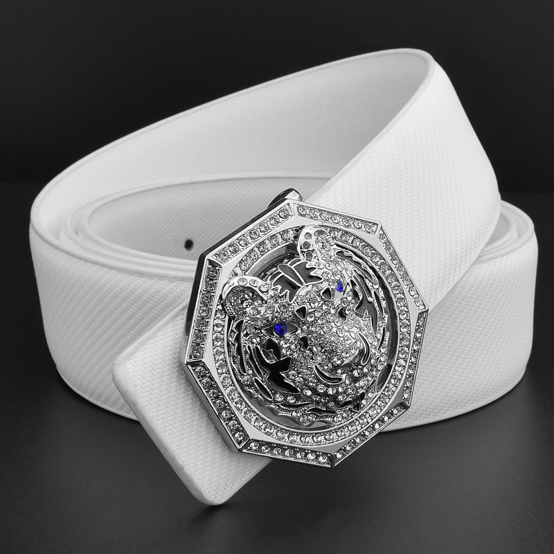 霸气老虎头皮带男士韩版潮人时尚夜店腰带男真皮白色青年个性裤带