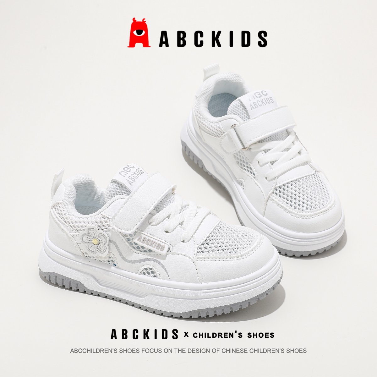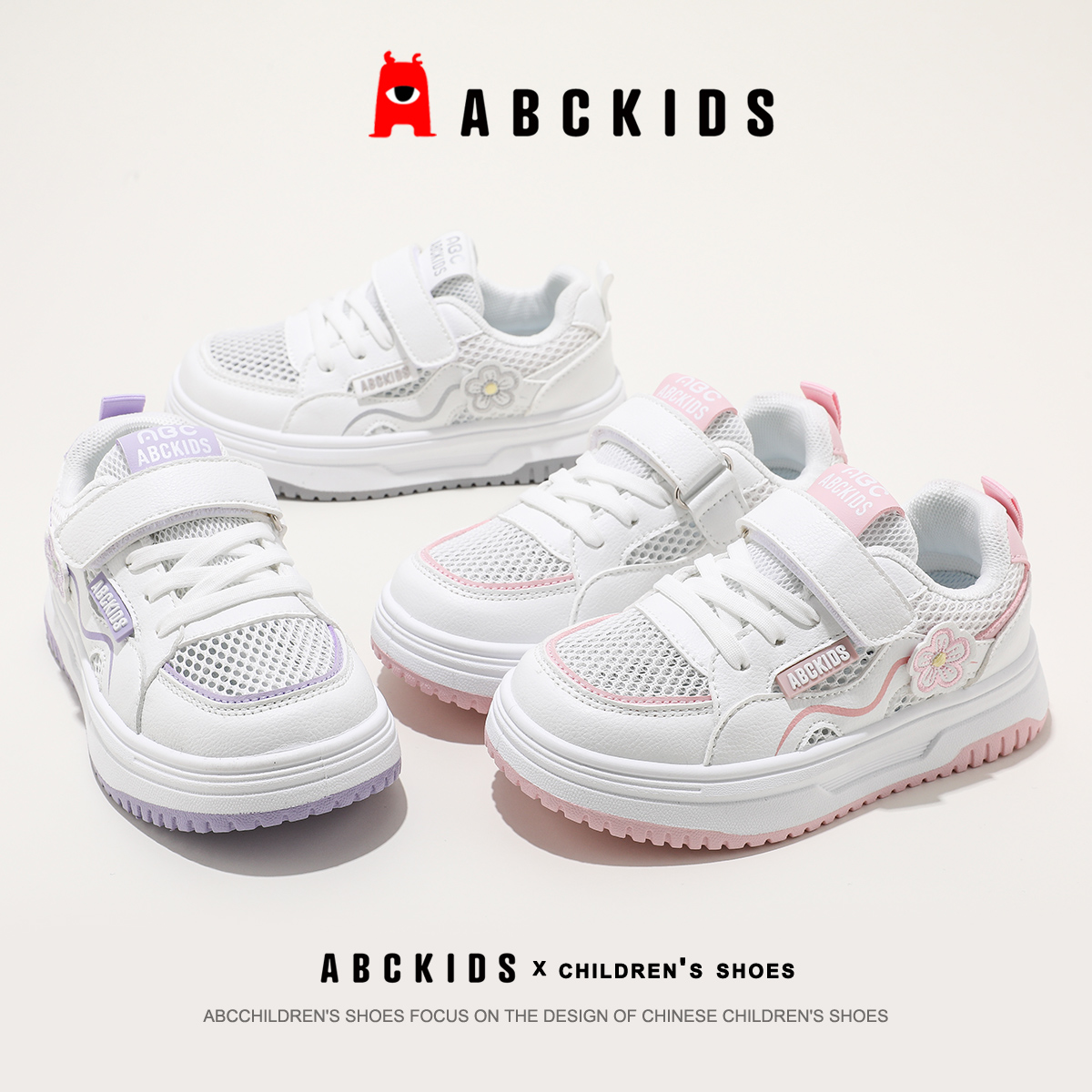 abckids童鞋儿童小白鞋男童2025新款夏季白色运动鞋小学生板鞋女
