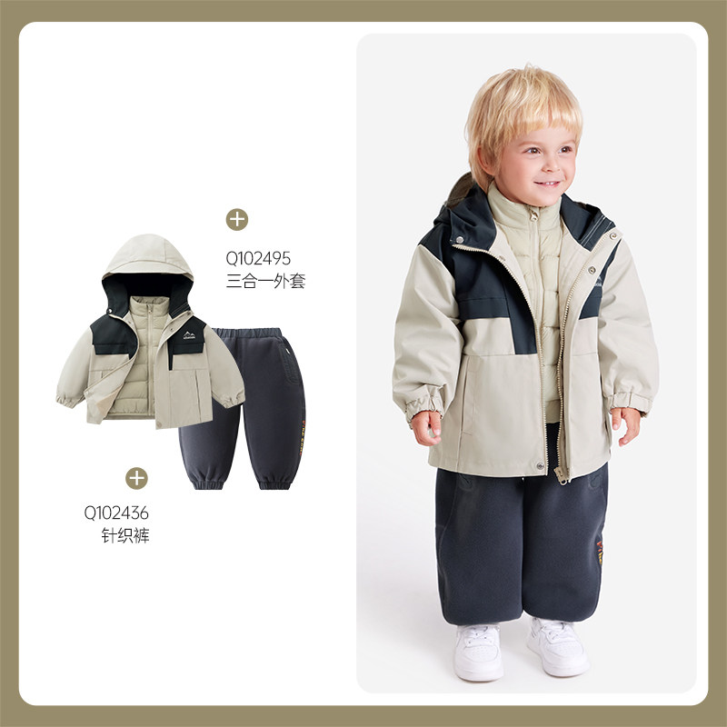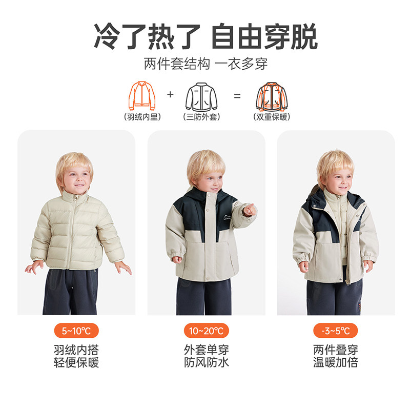 [三防]齐齐熊宝宝羽绒服男童外套羽绒内胆保暖三合一儿童冬装上衣