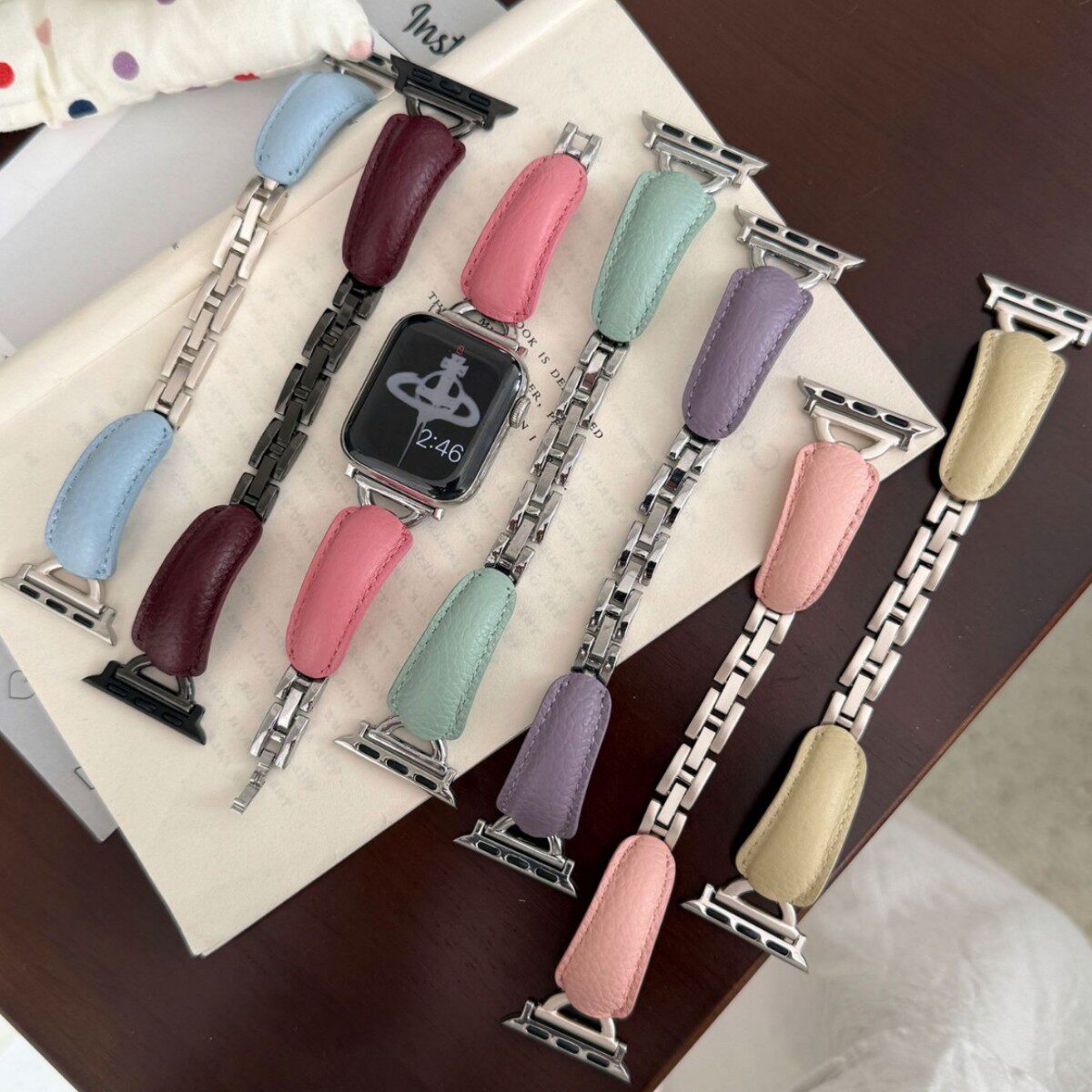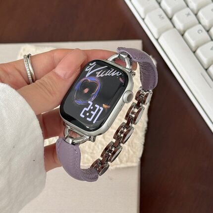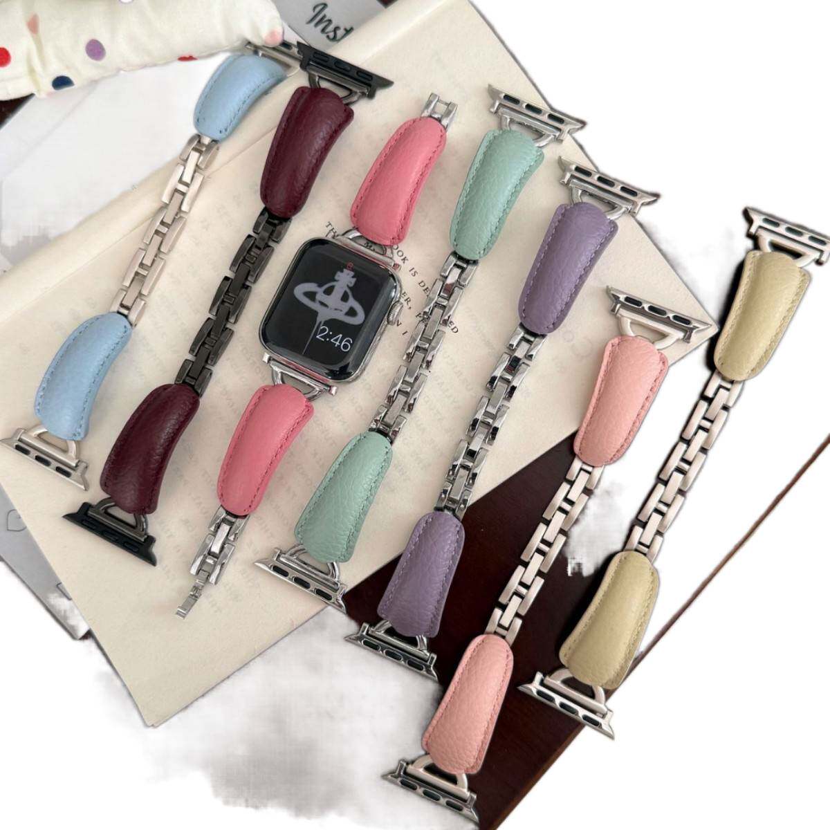 D字荔枝纹弯片金属表带适用苹果i