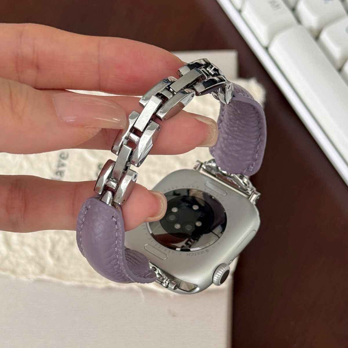 D字荔枝纹弯片金属表带适用苹果iwatch代/UltraSE