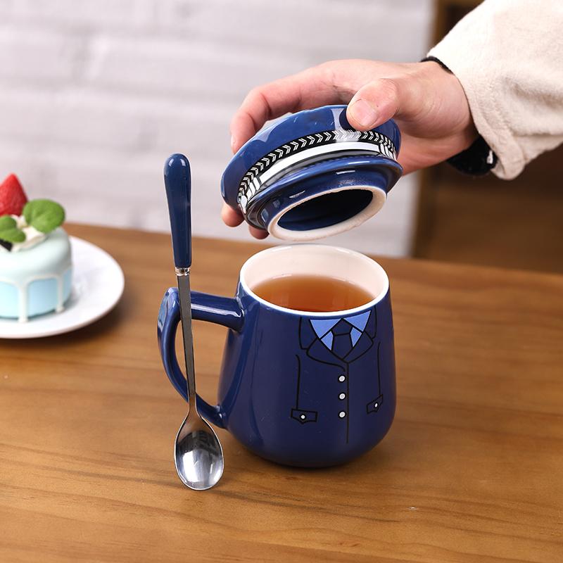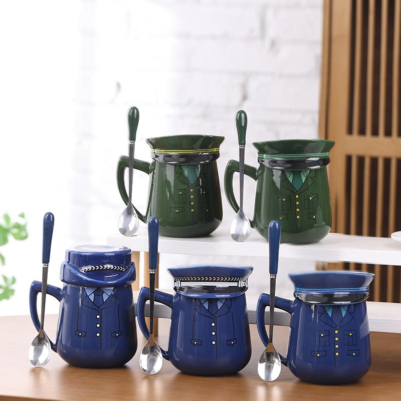 警察水杯陶瓷杯带盖勺茶杯家用礼物礼品创意马克杯公安杯子定制