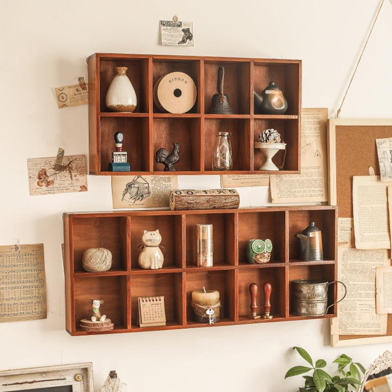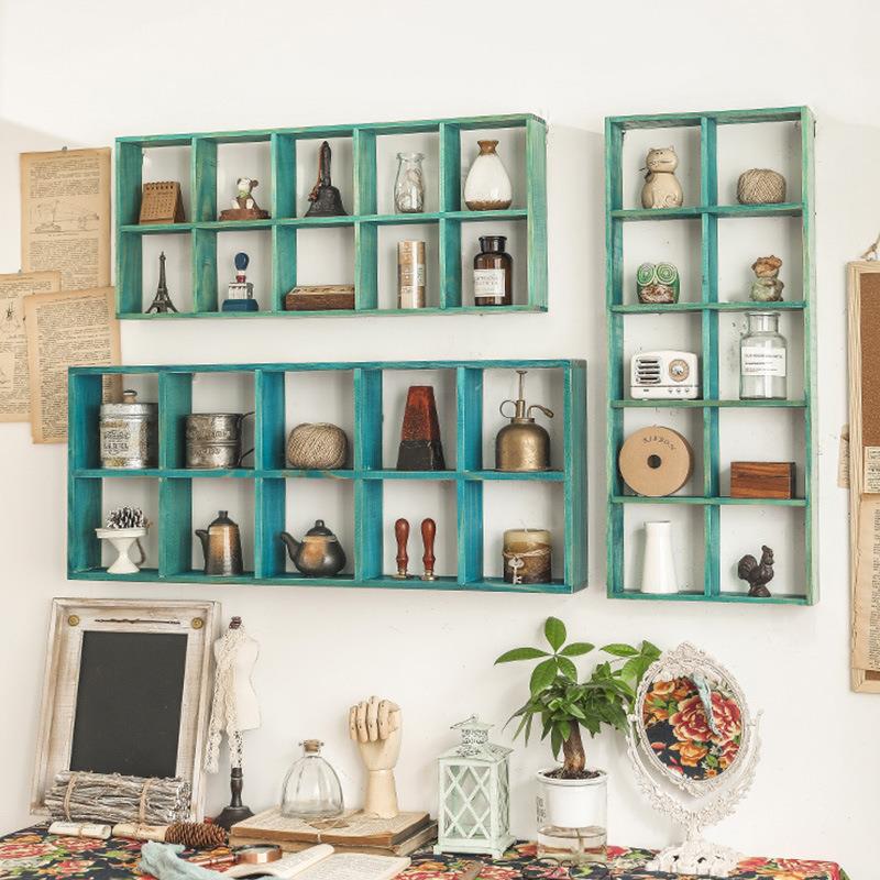 墙上置物架墙壁挂墙收纳盒免打孔实木格子墙面装饰柜挂架博古架