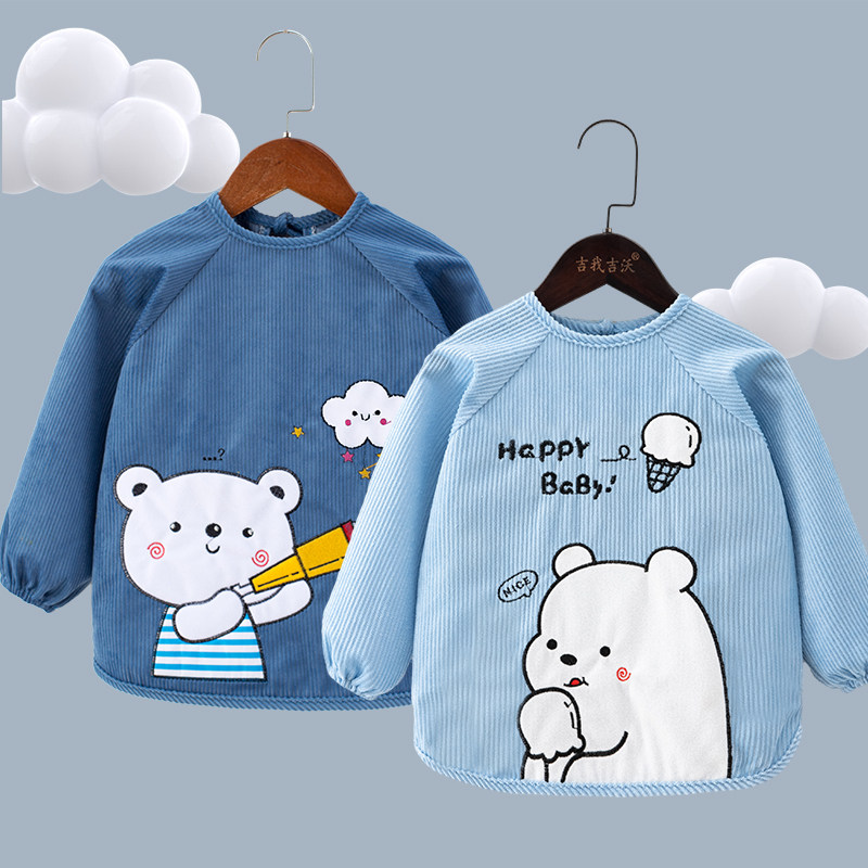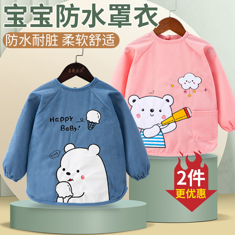 儿童罩衣防水防脏秋冬季饭兜男女宝反穿衣围裙婴儿吃饭护衣可外穿