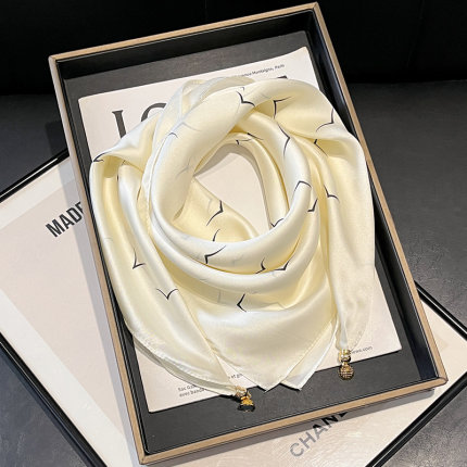 白色磁吸扣小方巾三角丝巾女春秋防晒搭配衬衫护颈脖子纱巾薄围巾