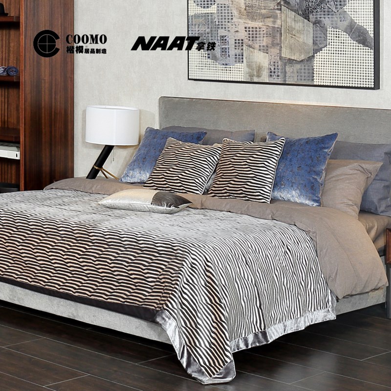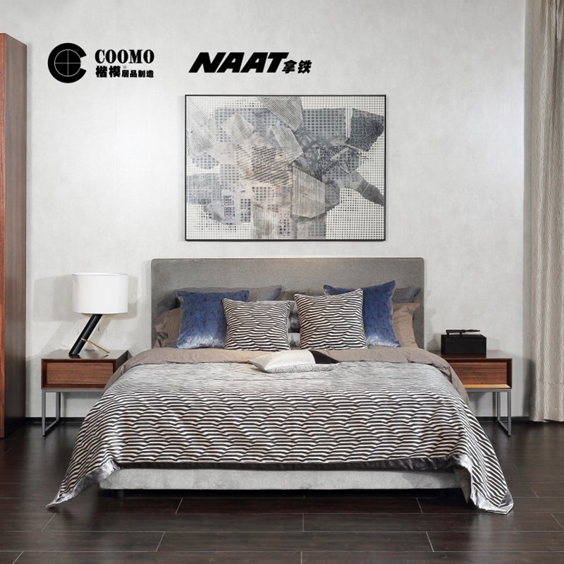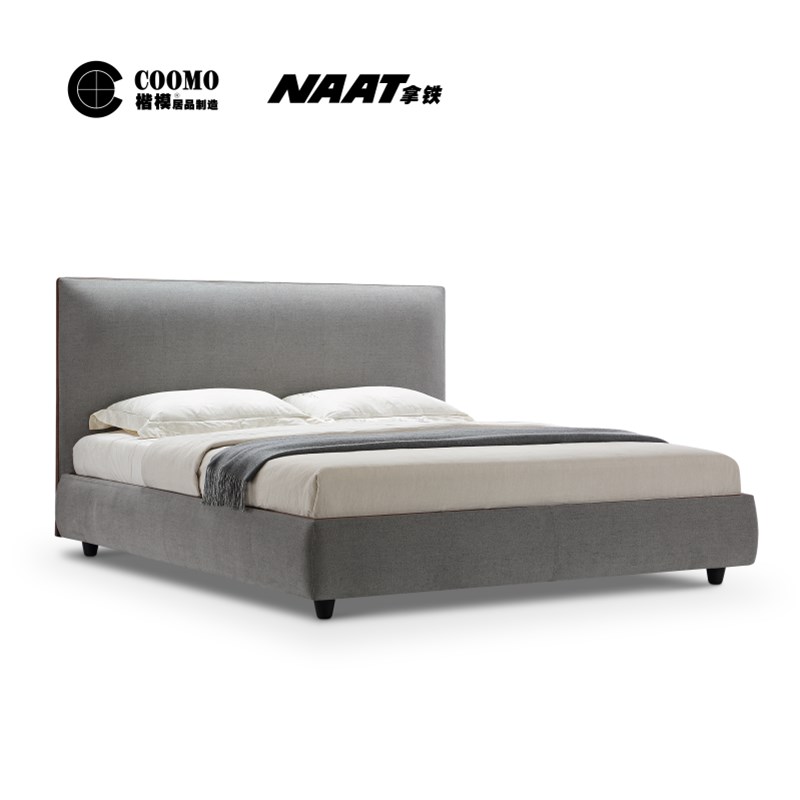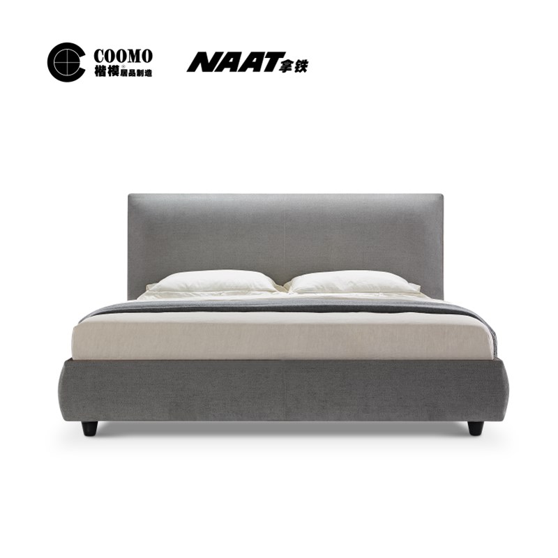 COOMO楷f模家具 拿铁布帕床布艺床实木床简约现代小户型卧室家具