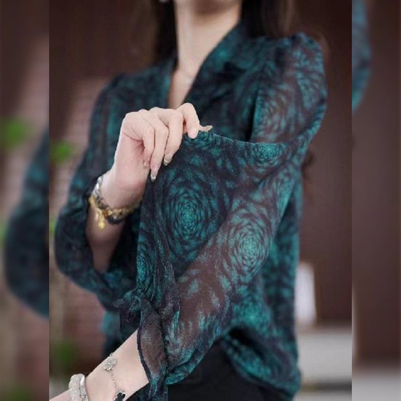 桑蚕丝飘带衬衫女长袖春夏季新款漂亮小衫妈妈遮肚子显瘦雪纺上衣