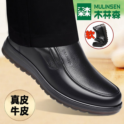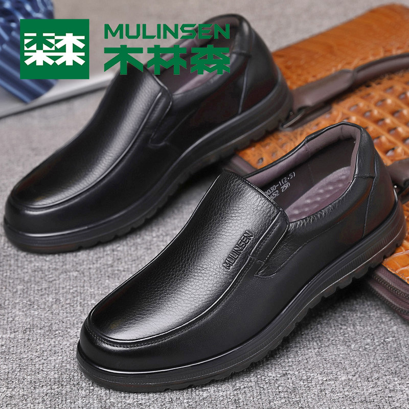 木林森皮鞋男真皮透气男士商务休闲皮鞋牛皮中老年软底防滑爸爸鞋