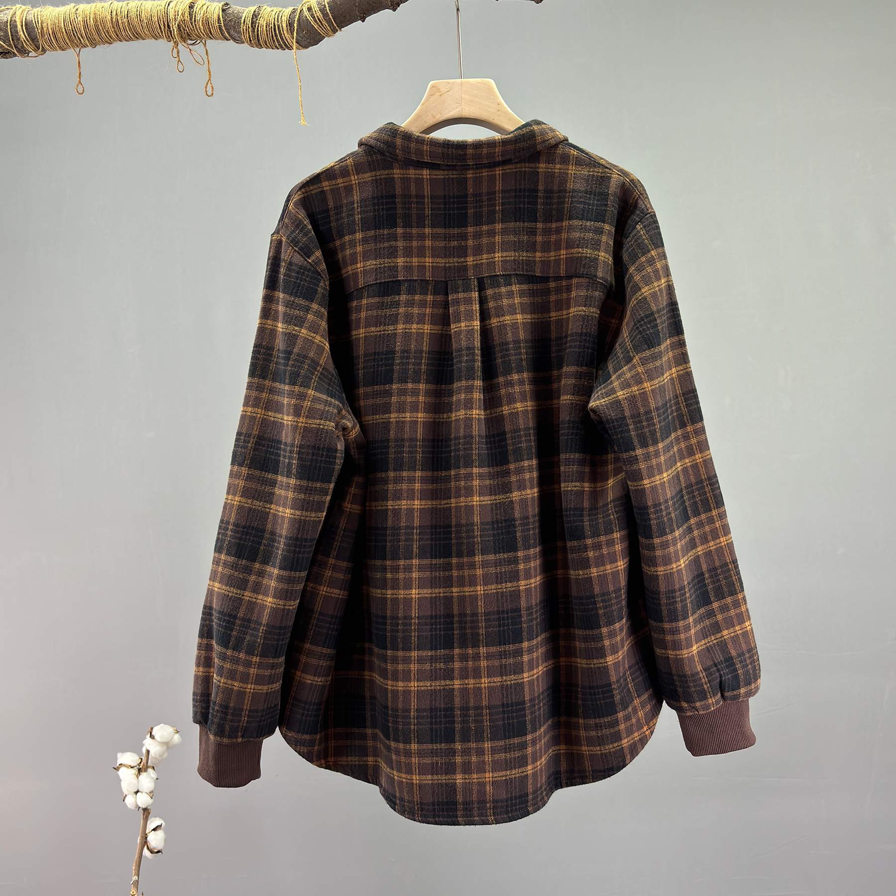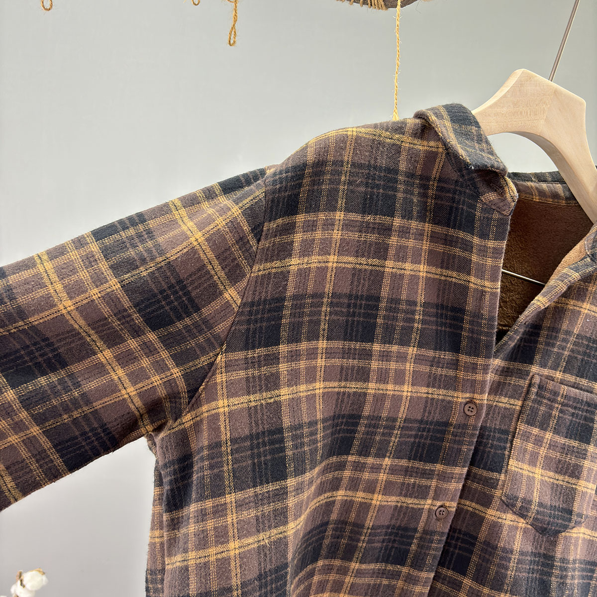 休闲格子全棉绒布一体加厚保暖衬衣女秋装翻领百搭打底衫格纹开衫